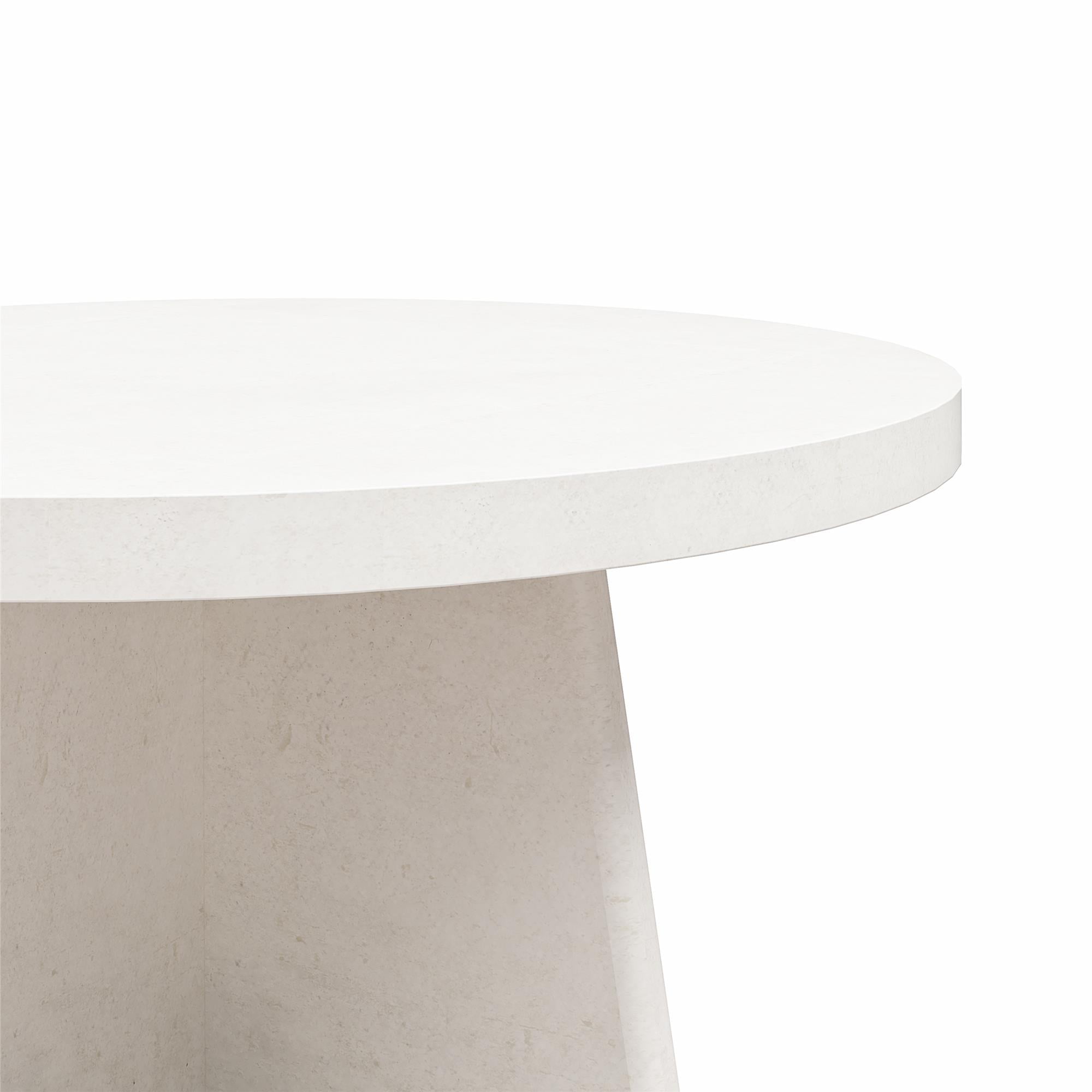 Discover the latest in chic living room furniture with the Liam collection from Ameriwood Home. Combining modern minimalism with rustic warmth, this faux plaster ensemble adds a touch of sophistication to any space. The neutral faux plaster finish of the Liam Round Coffee Table complements a variety of decor styles, while its curvaceous design adds visual interest. Crafted from durable engineered wood and MDF, this coffee table features a tapered square pedestal base and a spacious round top, offering both style and functionality without breaking the bank. With its simple slide assembly, this table is easy to put together, consisting of just three pieces. The coffee table ships flat to your door in one box and two adults are recommended to assemble. Assembled dimensions: 35.4″ W x 35.4″ D x 18″ H.