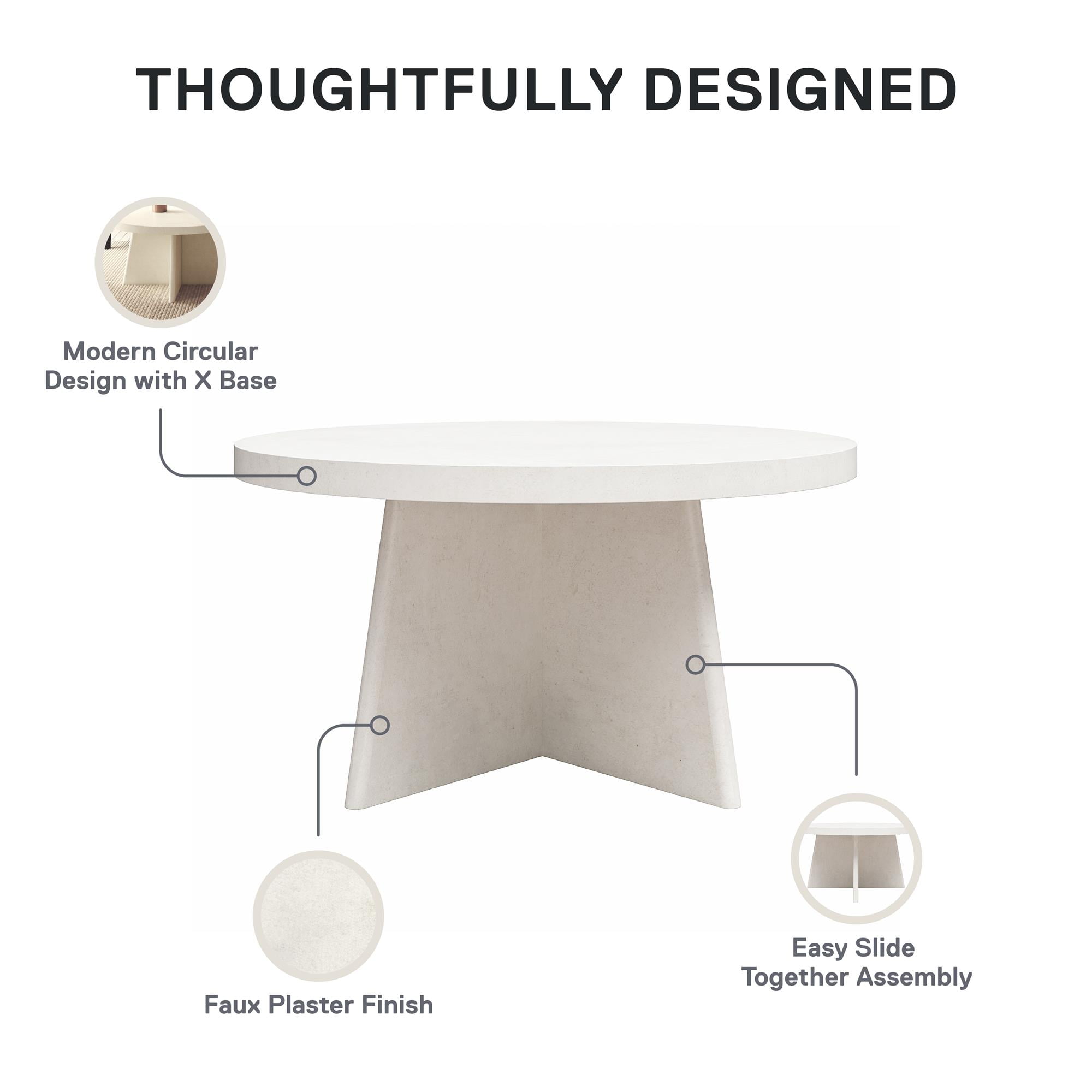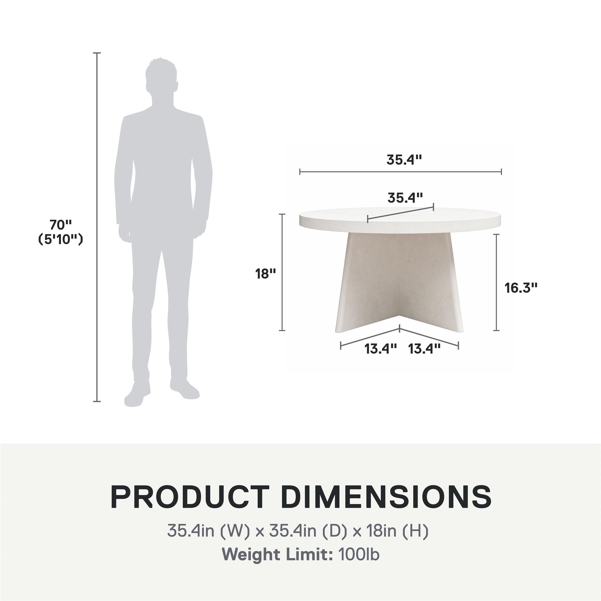THE PERFECT AESTHETIC: Get plastered in your living room with the Liam Round Coffee Table by Ameriwood Home, where crisp modern minimalism meets rustic earthy warmth in a creamy faux plaster finish MATERIALS & DIMENSIONS: Constructed from ultra-durable MDF and engineered wood; Assembled dimensions: 35.4″ W x 35.4″ D x 18″ H. Max weight capacities: Top: 100 lbs. STAND OUT STYLE: Table features a chunky pedestal base and round top ASSEMBLY & WARRANTY: Easy assembly with 3 pieces sliding and locking together and minimal hardware! Table ships flat in one box; 1-Year Limited Warranty Included