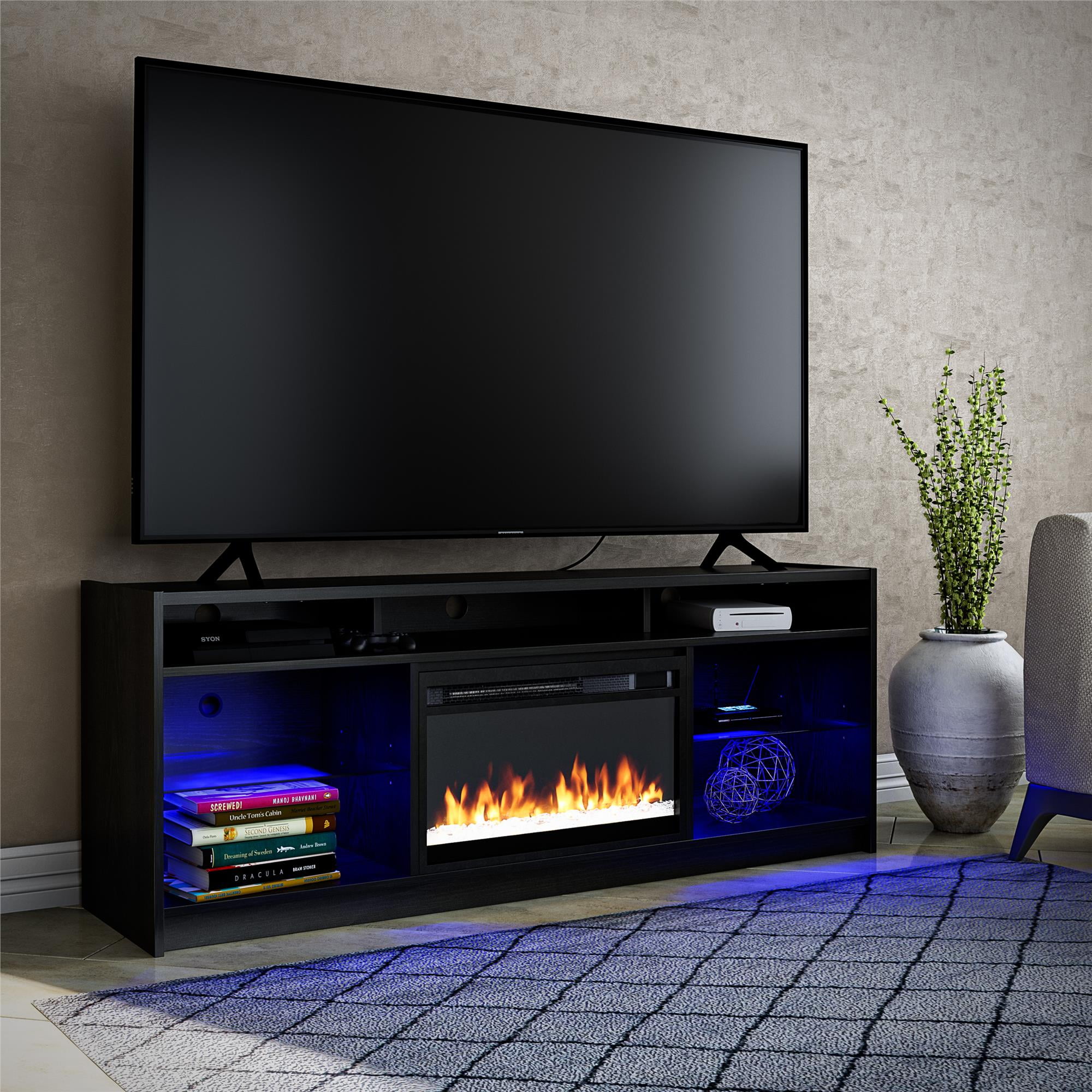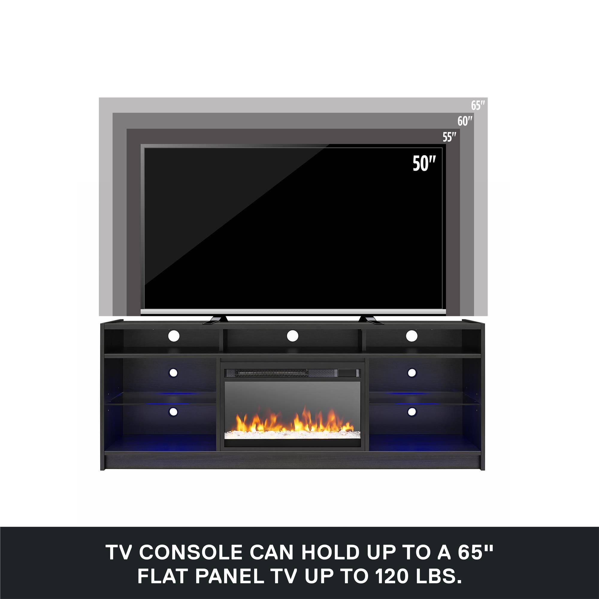 Ameriwood Home Lumaria Fireplace TV Stand for TVs up to 65″, Black Oak