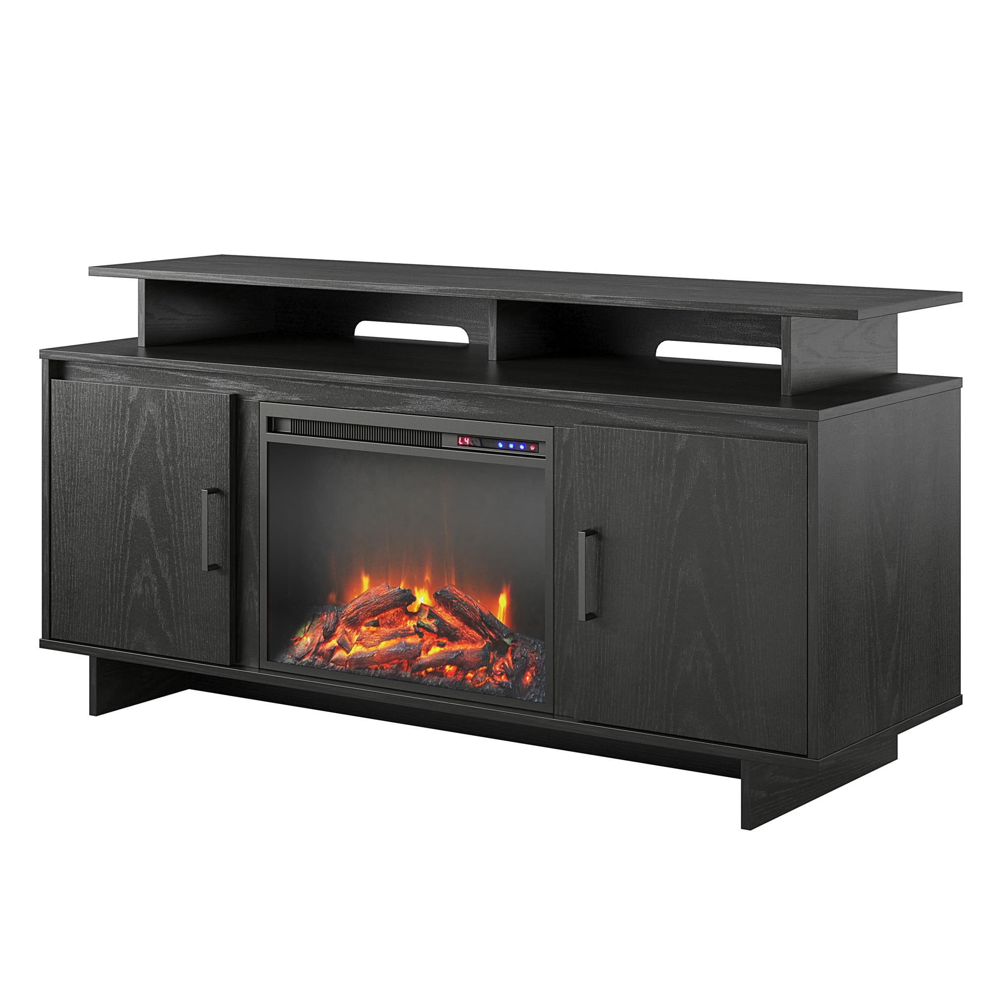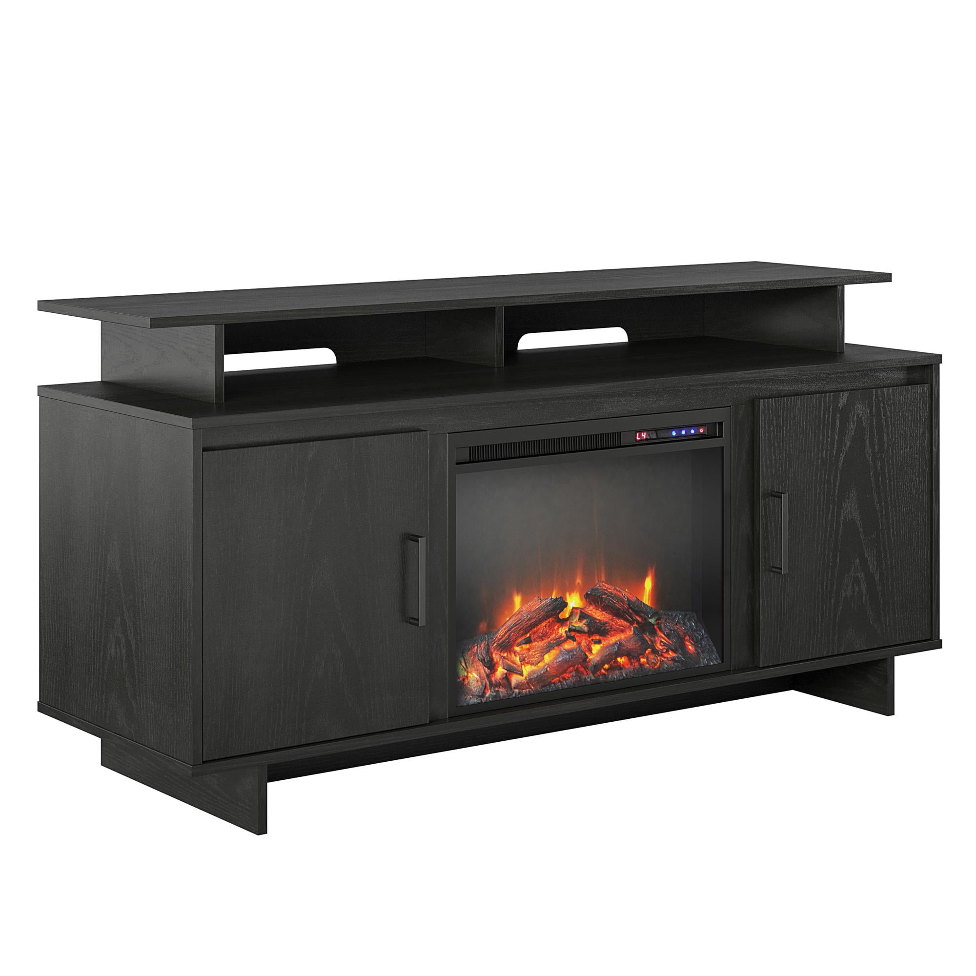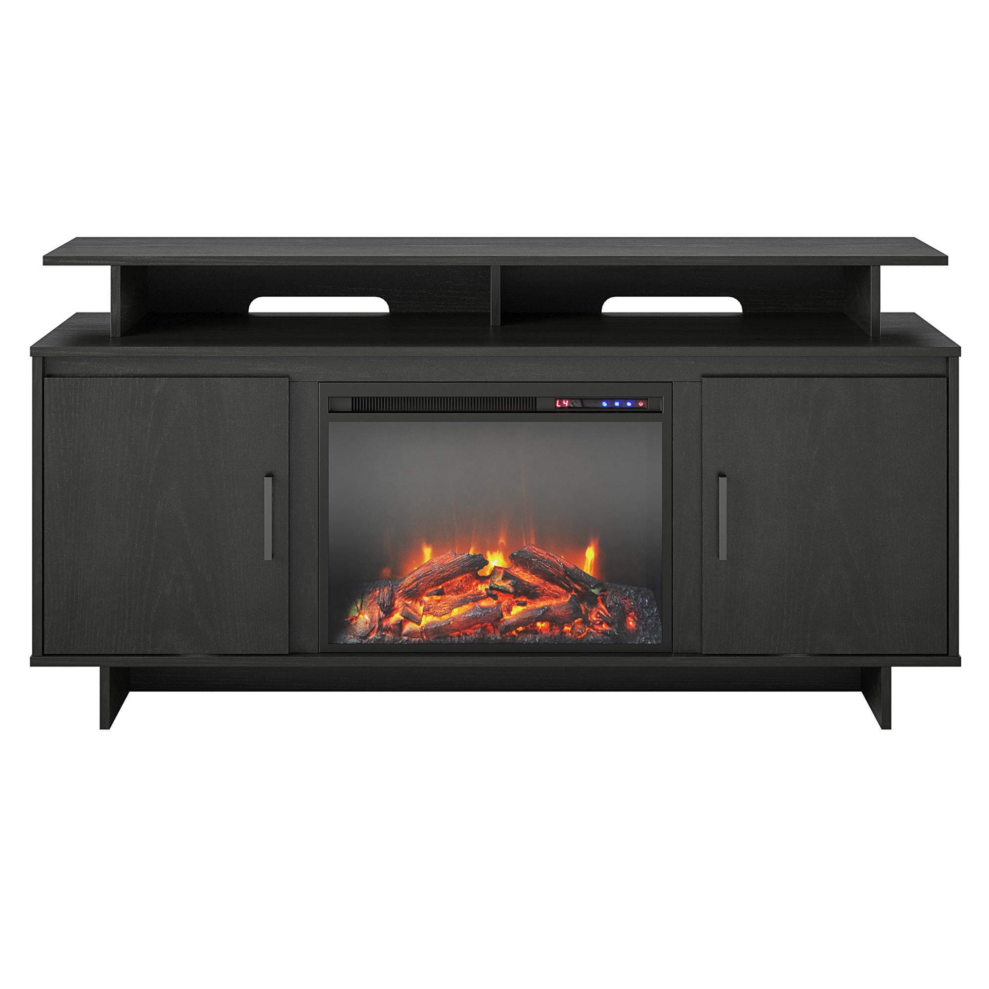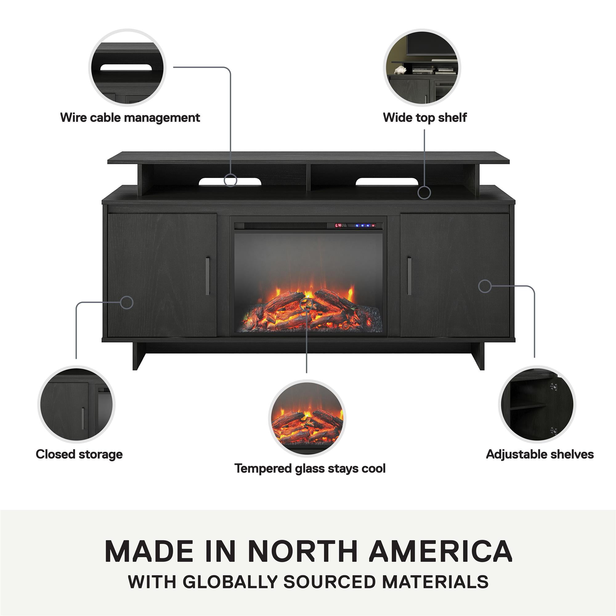 Ameriwood Home Midland Avenue Electric Fireplace TV Console with Storage Cabinets for TVs up to 74″, Black Oak