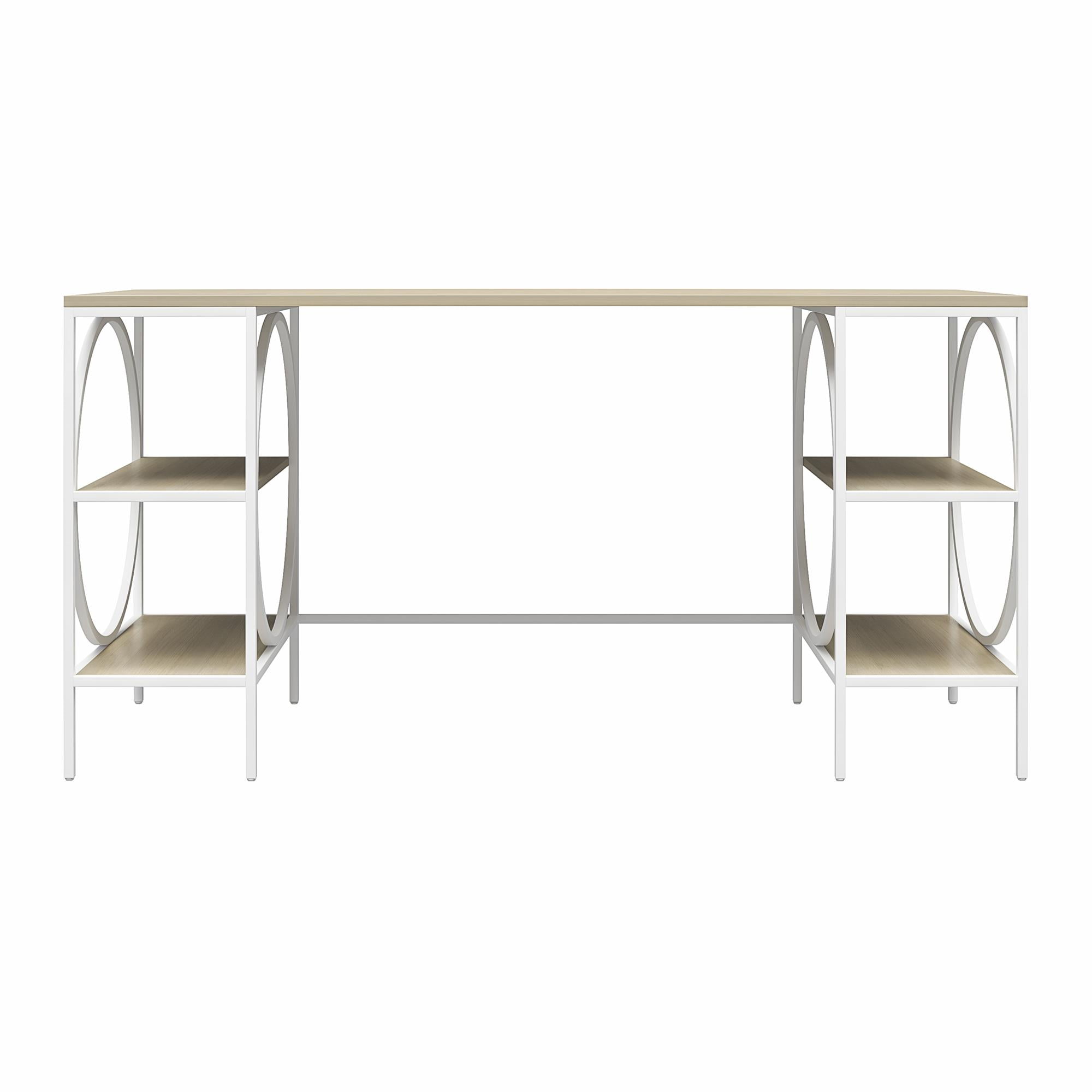 WHIMSICAL OFFICE UPGRADE: Transform your office with the fun and whimsical design of the Ameriwood Home Strafford Double Pedestal Desk DURABLE YET STYLISH: Crafted from durable engineered wood, this desk features a light woodgrain finish that perfectly complements the sturdy metal frame, creating a gorgeous statement piece AMPLE STORAGE SPACE: With four open shelves, this desk offers ample room for storing office supplies and showcasing decor. The curvaceous design adds a unique touch to your space ASSEMBLY AND CAPACITY: Ships flat to your door; assembly by 2 adults recommended. Each shelf holds up to 20 lbs, desktop supports 100 lbs. Dimensions: 60″ W x 23.62″ D x 30″ H. Shelf dimensions: 12″ W x 23.62″ D x 10.9″ H. Weight: 47.03 lbs. 1-YEAR LIMITED WARRANTY INCLUDED: Call centers, staffed by live agents in both the U.S. and Canada, are at your service for any needs related to replacement parts, assembly assistance, or inquiries about warranties 1-year limited warranty included