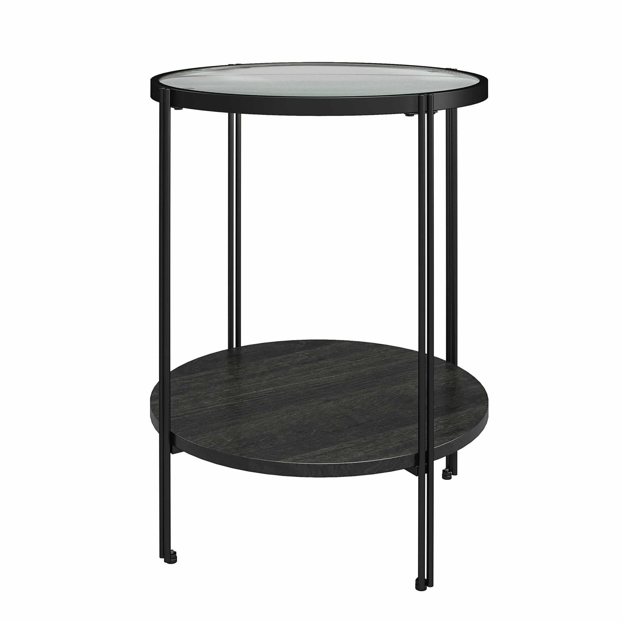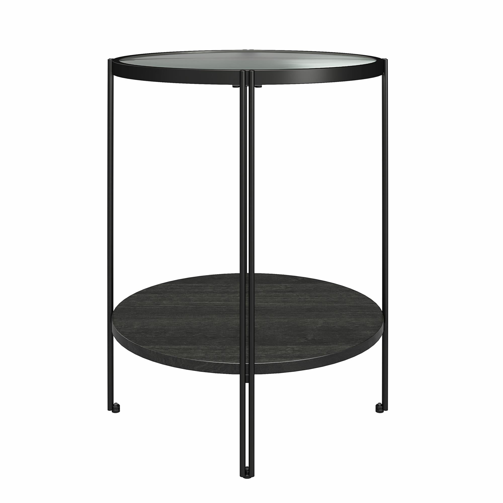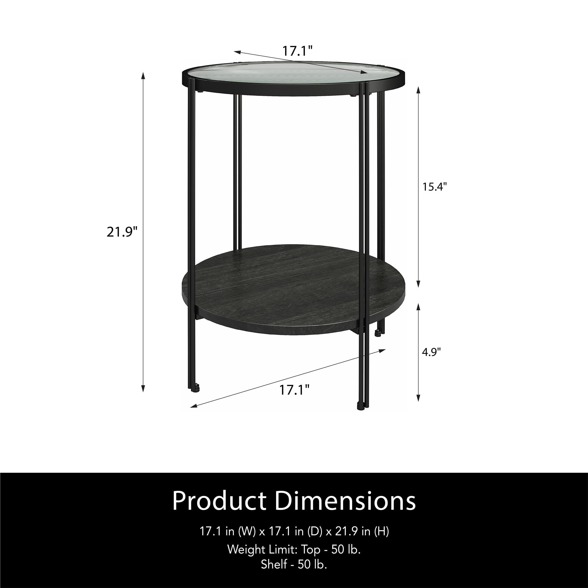 MODERN ROUND END TABLE: Complete your living room with the ultra-modern Vance Round End Table from Ameriwood Home STYLISH MATERIALS: Crafted from laminated engineered wood with a sturdy metal frame and fluted glass tabletop SPACIOUS TABLETOP: Keep essentials within reach on the spacious tabletop ELEGANT GLASS DESIGN: Enjoy a high-end look without breaking the budget with the fluted glass tabletop ASSEMBLY AND CAPACITY: Ships flat to your door; assembly by two adults recommended. The tabletop and lower shelf can each hold up to 50 lbs. for a combined maximum weight of 100 lbs. Assembled dimensions: 21.85″H x 17.1″W x 17.1″D 1-YEAR LIMITED WARRANTY INCLUDED: Call centers, staffed by live agents in both the U.S. and Canada, are at your service for any needs related to replacement parts, assembly assistance, or inquiries about warranties