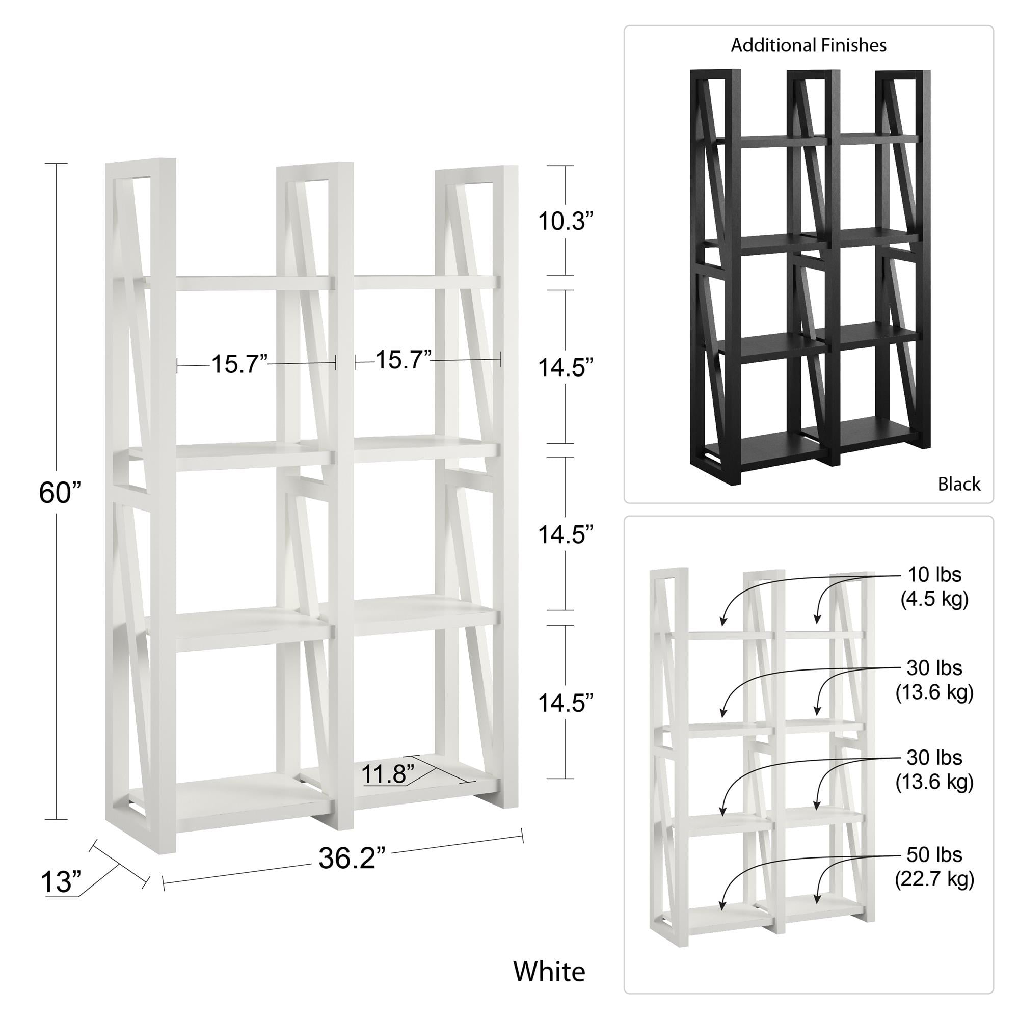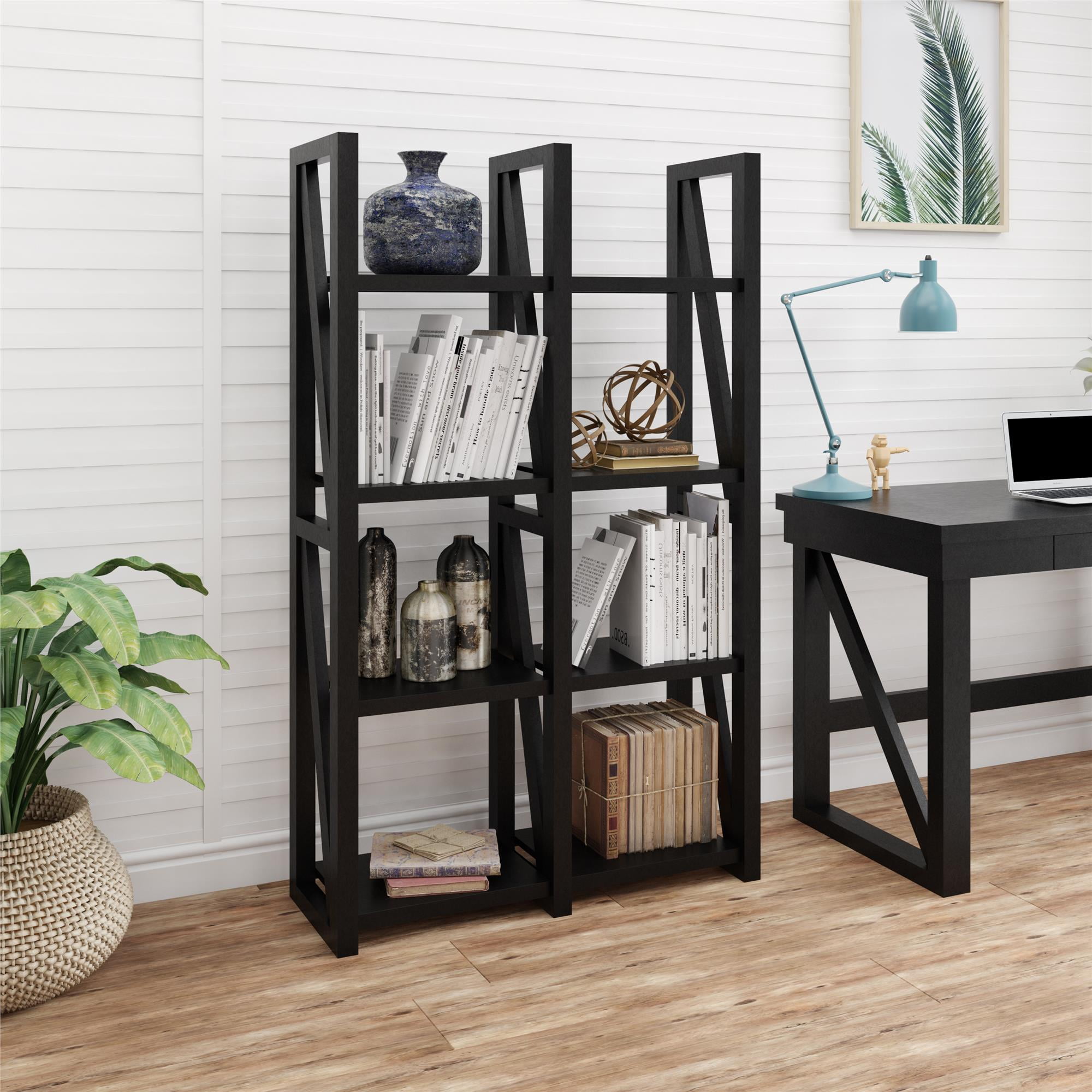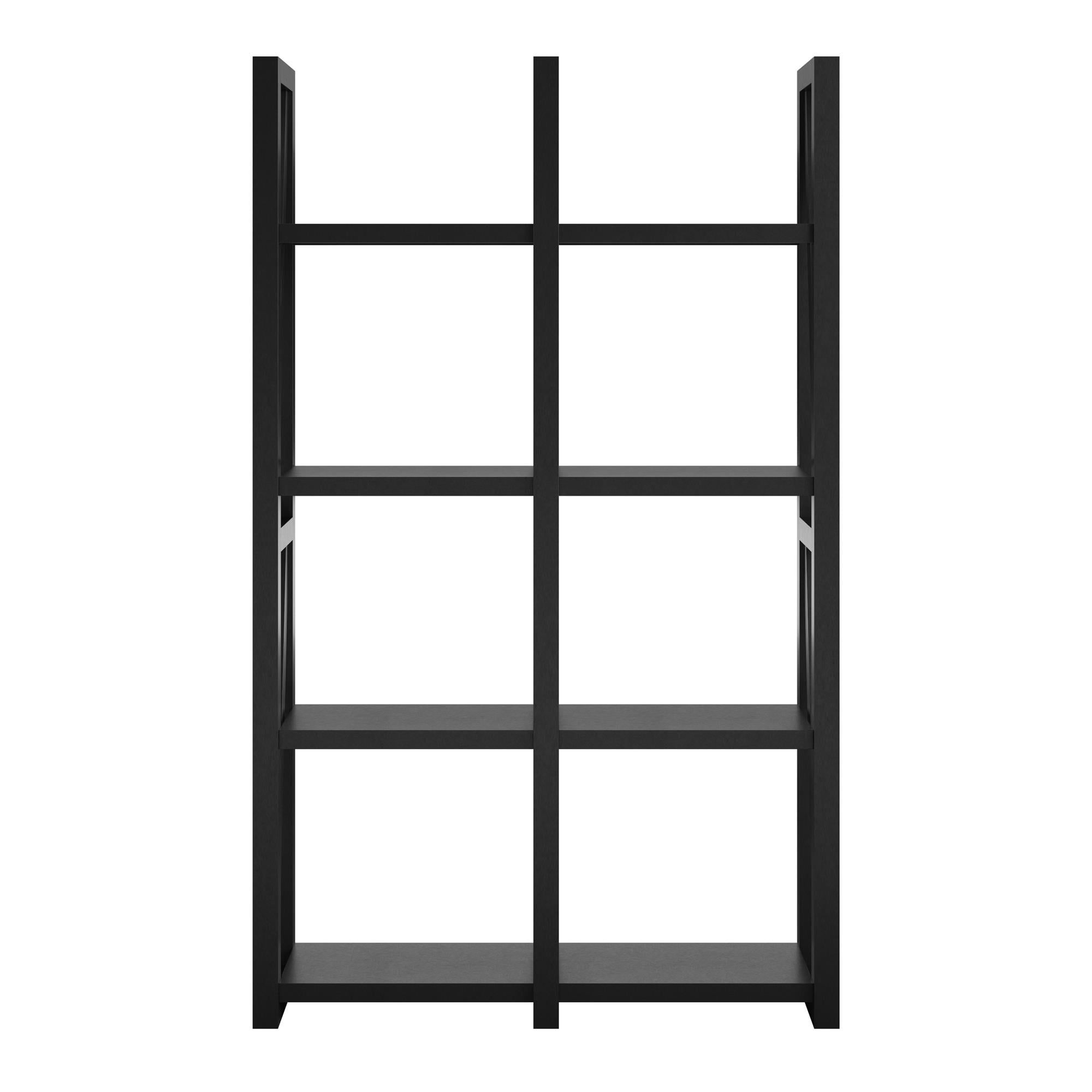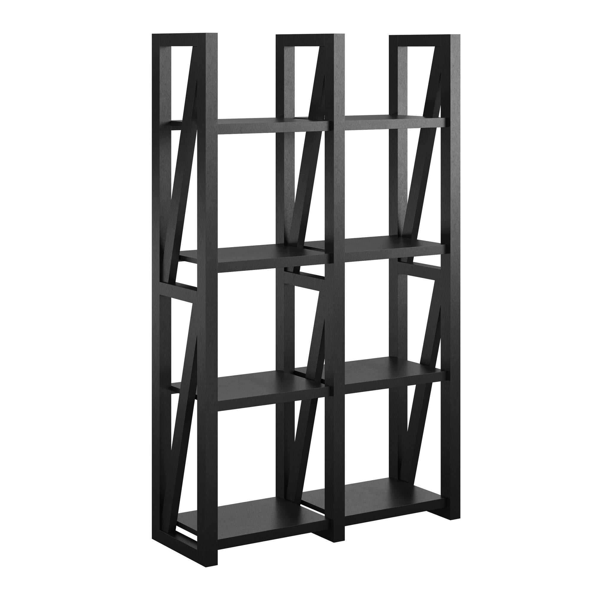 Create a beautiful rustic look in your living room, family room, den or home office with the Ameriwood Home Crestwood Bookcase/Room Divider. This item has 8 open shelves to keep your books, knick-knacks, decorative items, photos and more on. Use it as either a bookcase against a wall or get creative and use it to separate a large space. The open design that is finished all the way around makes it easy to use in multiple fashions. The classic black finish gives this piece the ability to blend with cottage, rustic, shabby chic or transitional styles. Made with painted MDF, this Bookcase/Room Divider will withstand years of use. A wall anchor kit is included to secure the Bookcase to the wall and prevent tipping injuries. The Bookcase/Room Divider ships flat to your door and requires assembly upon opening. Two adults are recommended to assemble. Once assembled, the Bookcase/Room Divider measures to be 60″H x 36.22″W x 12.99″D.