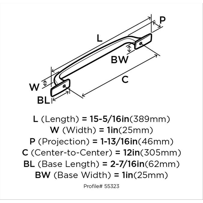 - 12 in (305 mm) Center-to-Center Appliance Pull
