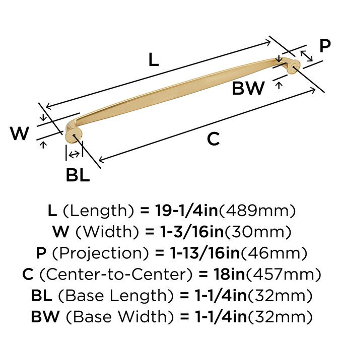The Amerock BP53806CZ Kane 18 inch (457mm) Center-to-Center Appliance Pull is finished in Champagne Bronze. Simple appeal complements utilitarian design in the Kane collection, which creates a casual, understated look. The velvety, auburn glow of Champagne Bronze, resonates with warmth. The finish imparts a radiant and sophisticated palette to the kitchen or bath. Founded in 1928, Amerock’s award-winning home solutions including decorative and functional cabinet hardware, bath accessories, decorative hooks and wall plates have built the company’s reputation for chic design accessories that inspire homeowners to express their personal style. Amerock offers a variety of styles and finishes at affordable prices that add the perfect finishing touch to any room.