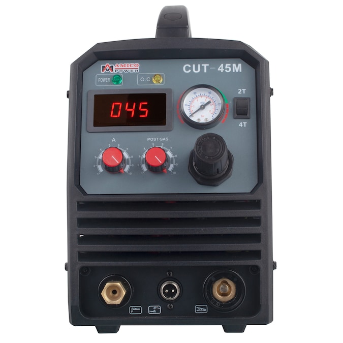 - 45-Amp Air Plasma Cutter, 3/5-inch Clean Cut, 100-250V Wide Voltage.