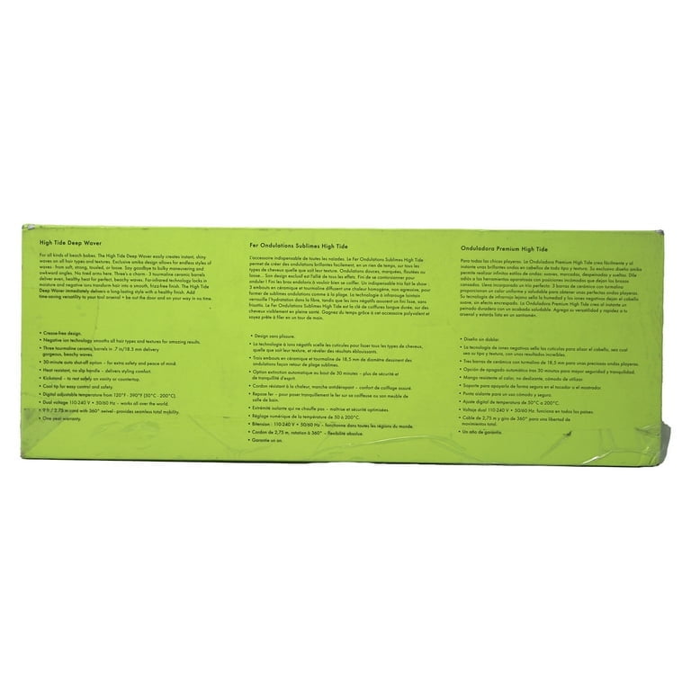 High Tide Deep Waver – Black Crease-free design instantly creates flawless beach waves. Negative ion technology smooths all hair types and textures for amazing results. Three tourmaline ceramic barrels, each measuring 0.7 in / 18.5mm, deliver gorgeous, beachy waves.