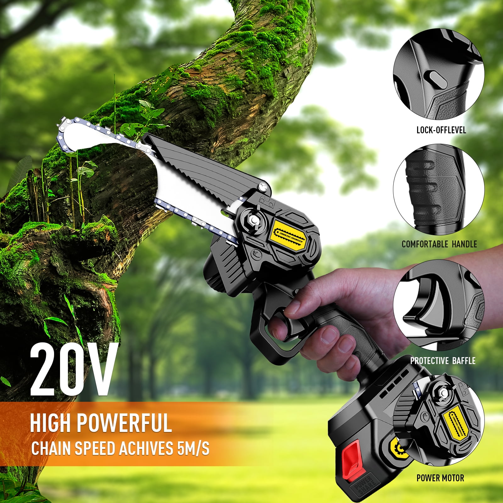 Amobro 6″ Mini Cordless Chainsaw Handheld Chain Saw for Outdoor Tree Garden Wood Cutting 2 Battery.