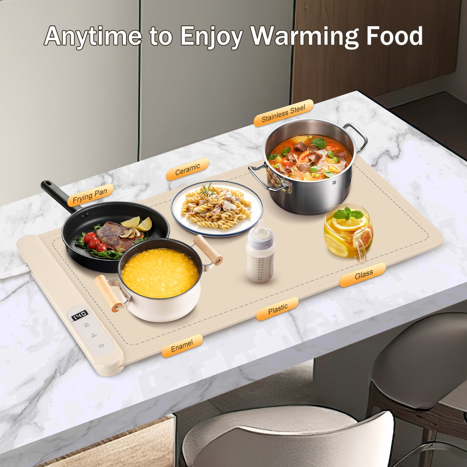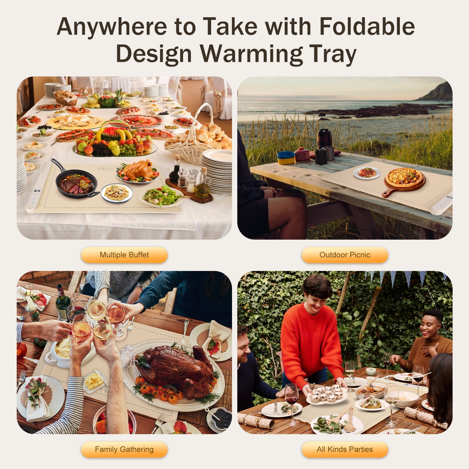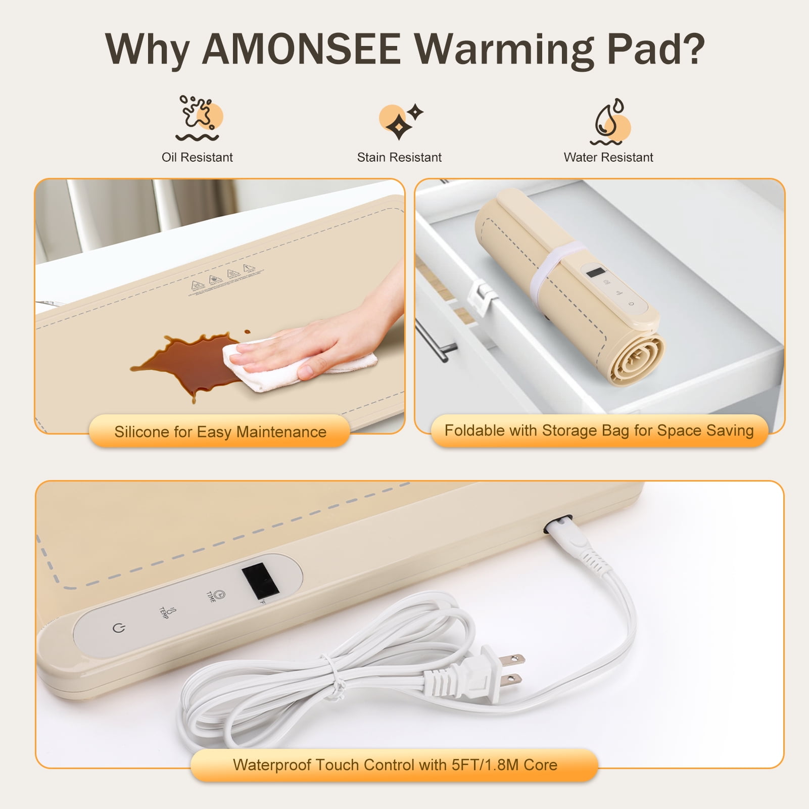AMONSEE Electric Warming Tray,Adjustable Temperature Food Warming Mat,Portable Food Warmer