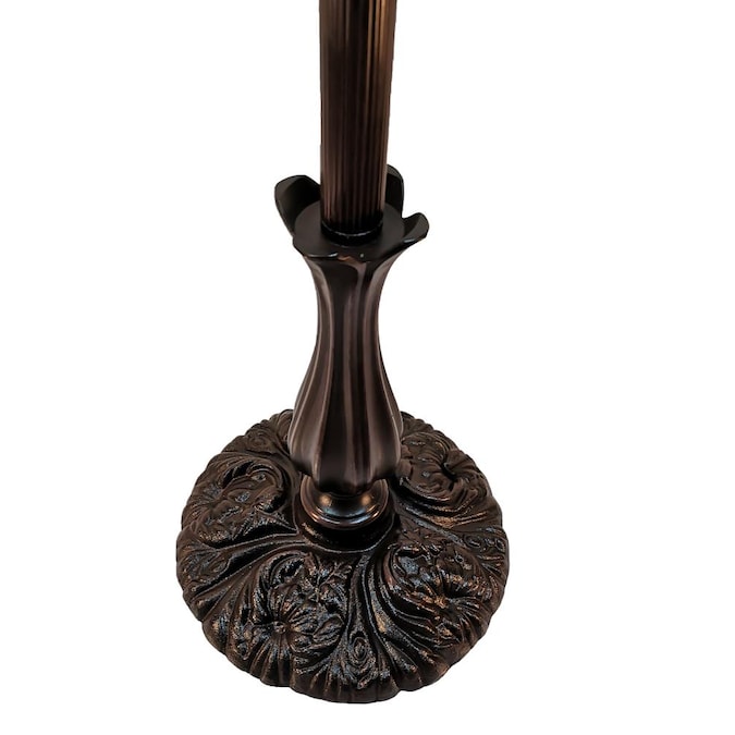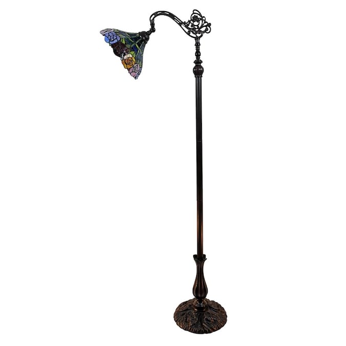 This Tiffany style lamp is handcrafted using the same techniques that were developed by Louis Comfort Tiffany in the early 1900s. This beautiful lighting fixture features a dark brown finish. Standing 62 inches high, this reading floor lamp features a delicate bead and glass shade at the end of a gently curved arm.
