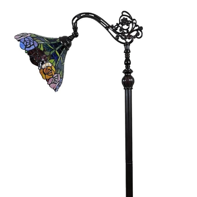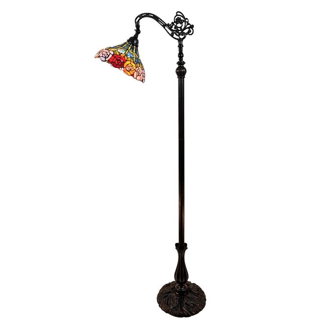 Amora Lighting Tiffany Stained Glass Roses Reading Floor Lamp 62-in Tall – Handcrafted with 291 Glass Pieces and 21 Glass Jewels