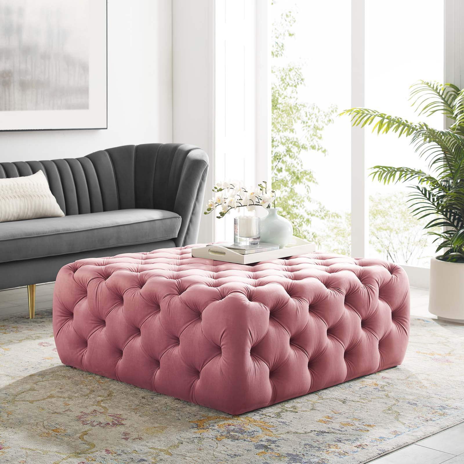 Amour Tufted Button Large Square Performance Velvet Ottoman Enliven your decor with Amour. This tufted button large square ottoman comes upholstered in soft and durable stain-resistant performance velvet fabric with dense foam padding for a luxurious seating experience. A versatile piece of furniture, instantly update your living room, bedroom, or entryway with this glamorous accent piece. Amour delivers an extra living room seat, a place to kick your feet up, or a convenient surface for magazines, and other leisure items. Ottoman Weight Capacity: 400 lbs.Set Includes:One – Amour Tufted Button Large Square Ottoman Sku: Mod_EEI-3774-DUS Category: Living Room Product Material: MDF + Plywood + LVL + Wood + Foam + Plastic legs, Yuhua polyster fabric, 20 & 26G/M3 density foam, Polyester Fiber – 120g, Bench Weight Capacity: 400lbs. Product Color: Dusty Rose Assembly: Y Manufacturer: Modway Furniture UPC: 889654158011 Item Dimensions: Overall Product Dimensions: 39″L x 39″W x 16.5″H Product Weight: 42