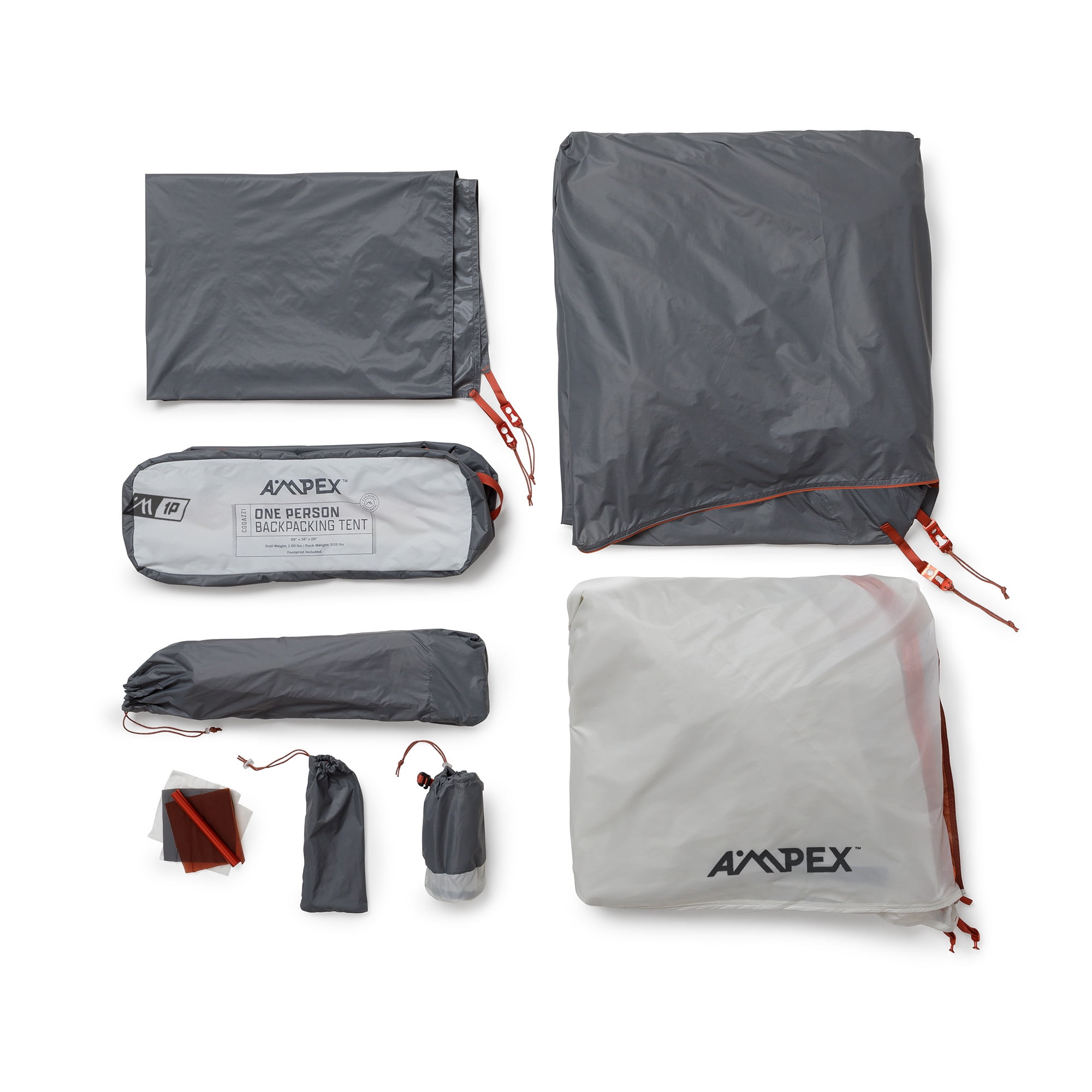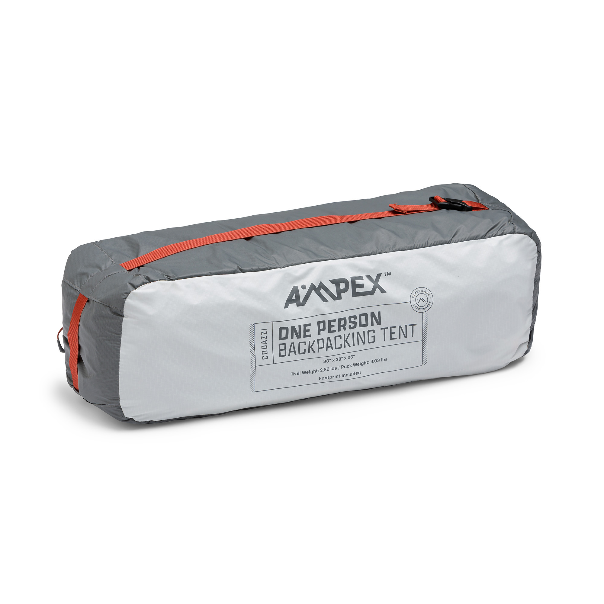 The AMPEX Codazzi 1 Person Backpacking Tent is lightweight and durable for confident excursions on the trail. It is extremely versatile with multiple pitching options that allow for minimum weight or full feature setup, including trekking pole integration (trekking poles not included)! The robust construction and specification includes a footprint to minimize abrasion to the tent floor.