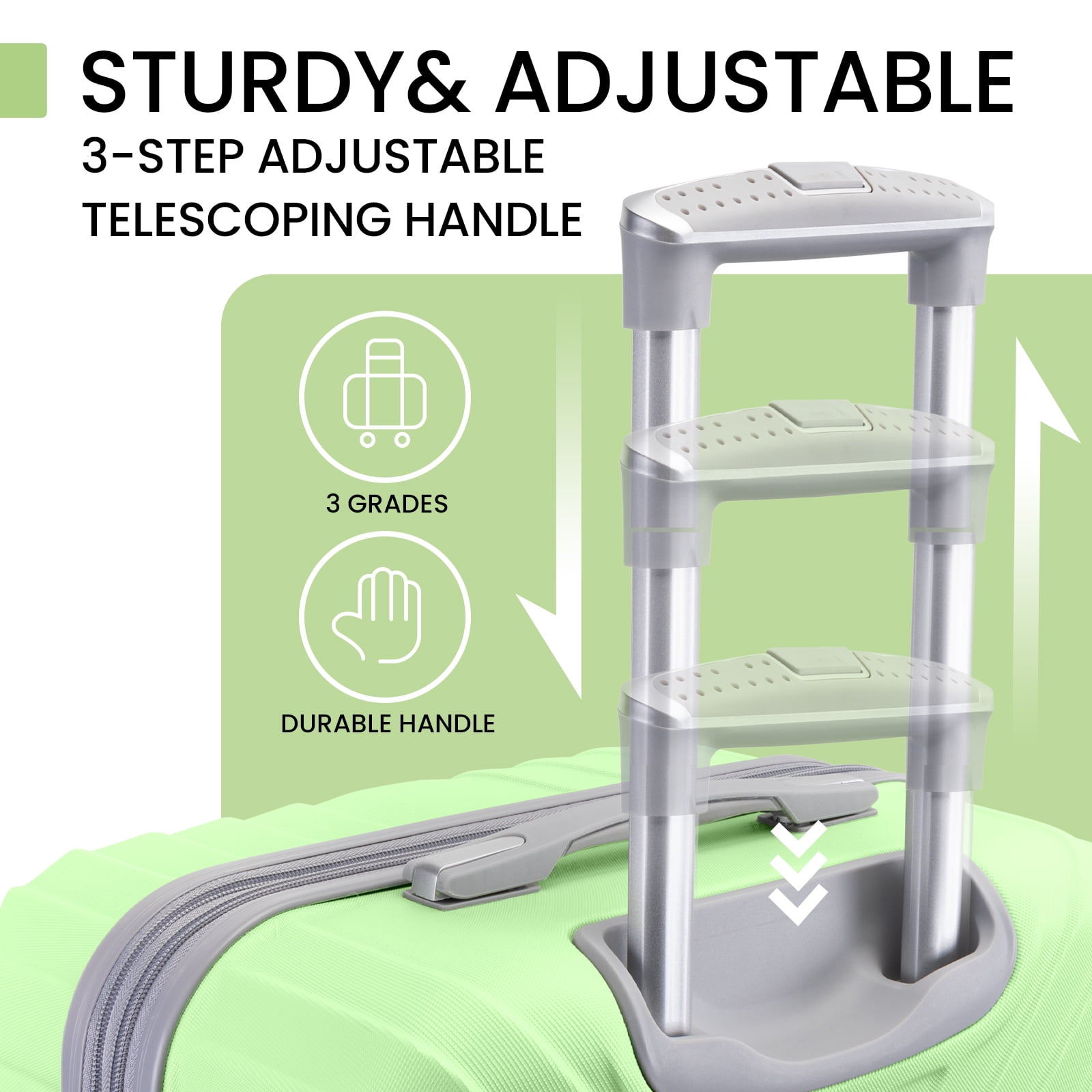 AMZFUN 3PCS Luggage Sets,PC+ABS Hardside Lightweight Suitcase with Silent Universal Wheels, TSA Lock Carry On Luggage 20/24/28 Inch,Light Green
