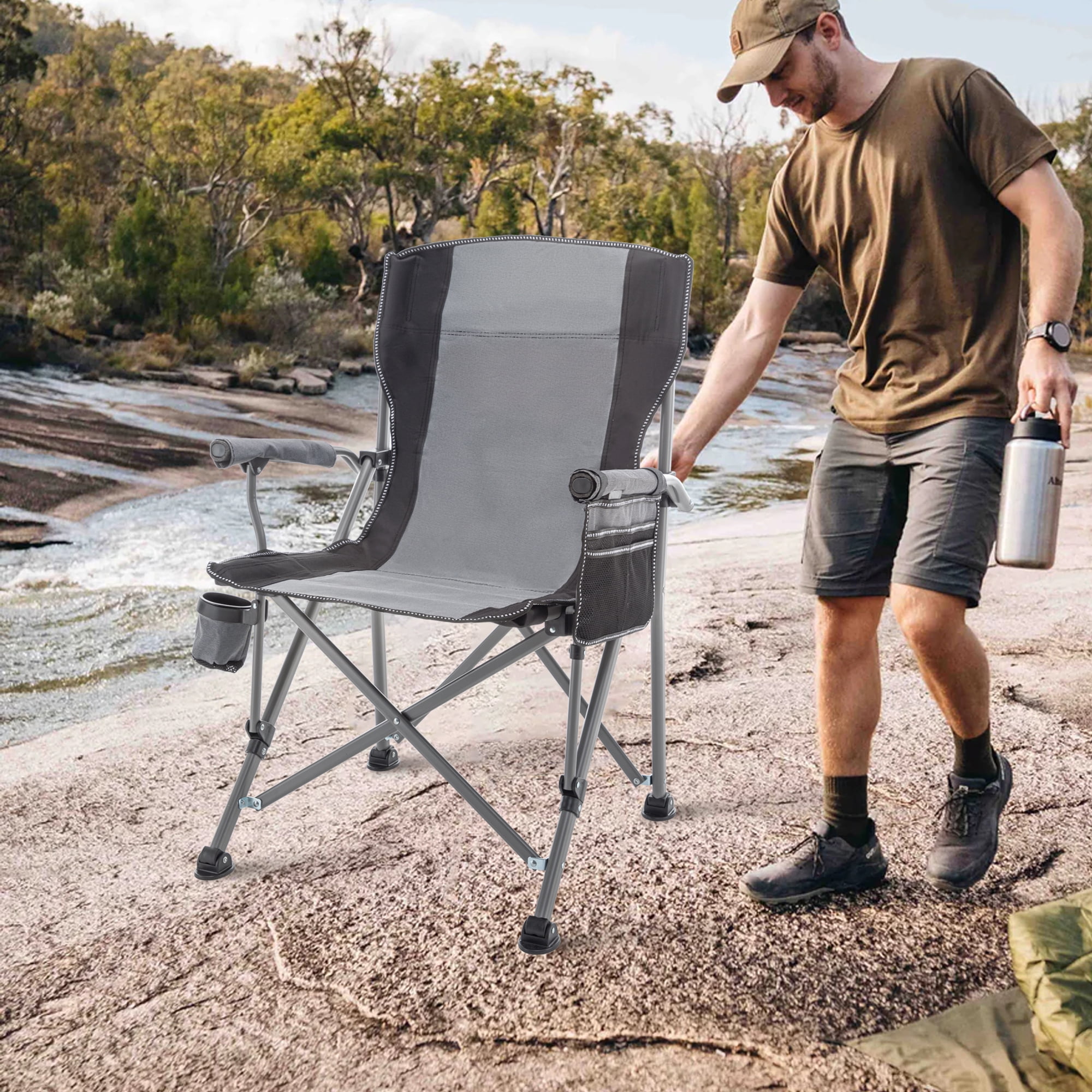 Andeworld Floding Camping Chair Oversized Heavy Duty Outdoor Patio Chair with Cup Holder and Storage Bag for Fishing,Camping(Grey)