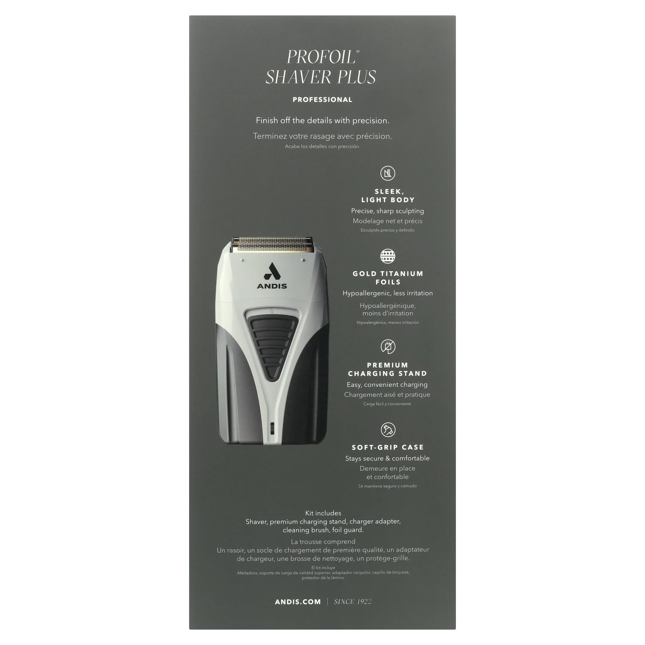 Achieve the smoothest fades with rich, gold titanium foil heads that expertly pare hair down to the skin without irritation. Pushed forward by a powerful rotary motor, the ultra-lightweight case was made for agility and razor-close cuts. Clean up edges and eliminate stubble all afternoon. Extra long-lasting lithium-ion power means non-stop smooth finishing, while the premium, snap-in charge stand keeps your instrument always within reach. Push beyond ordinary with the Andis ProFoil Lithium Plus Titanium Foil Shaver.