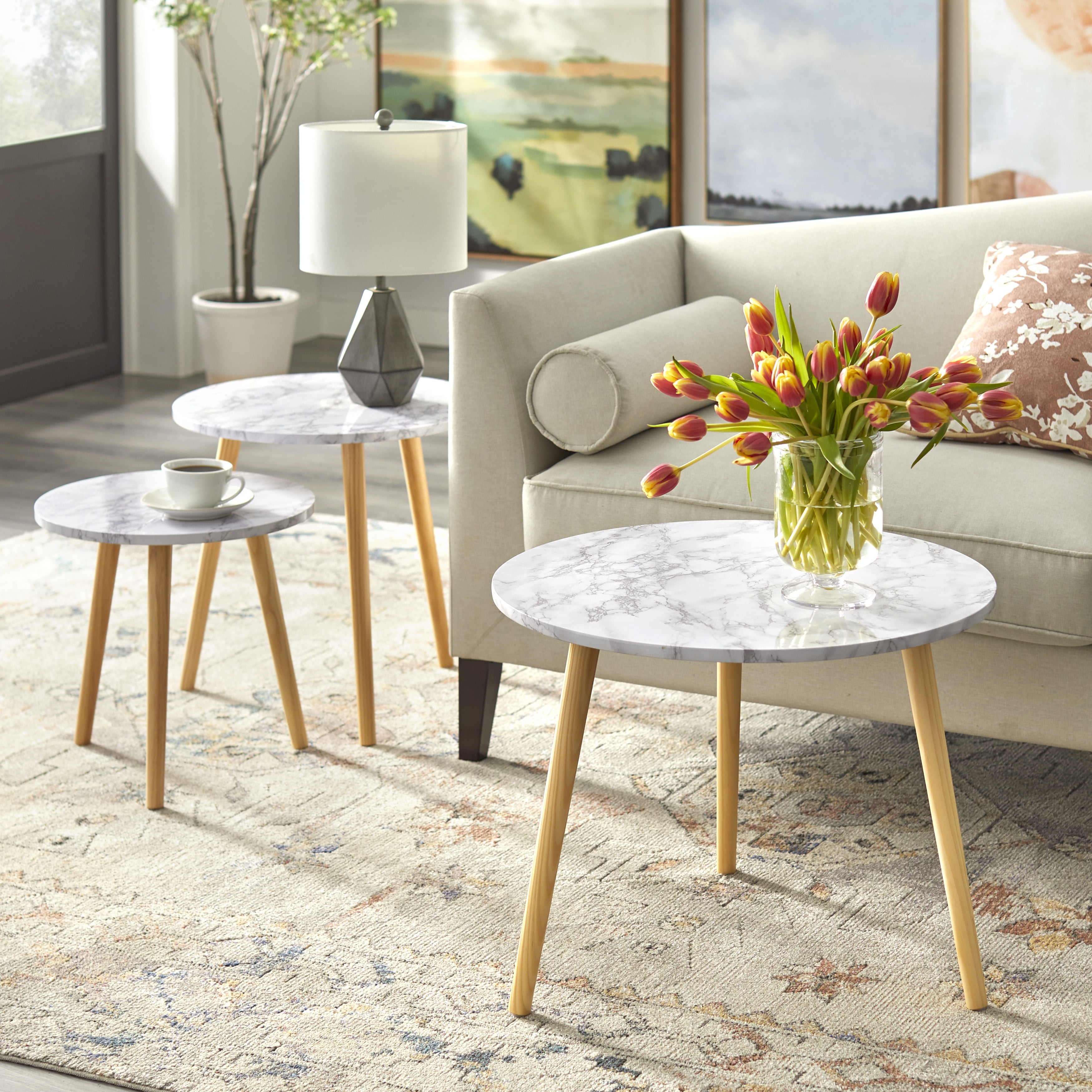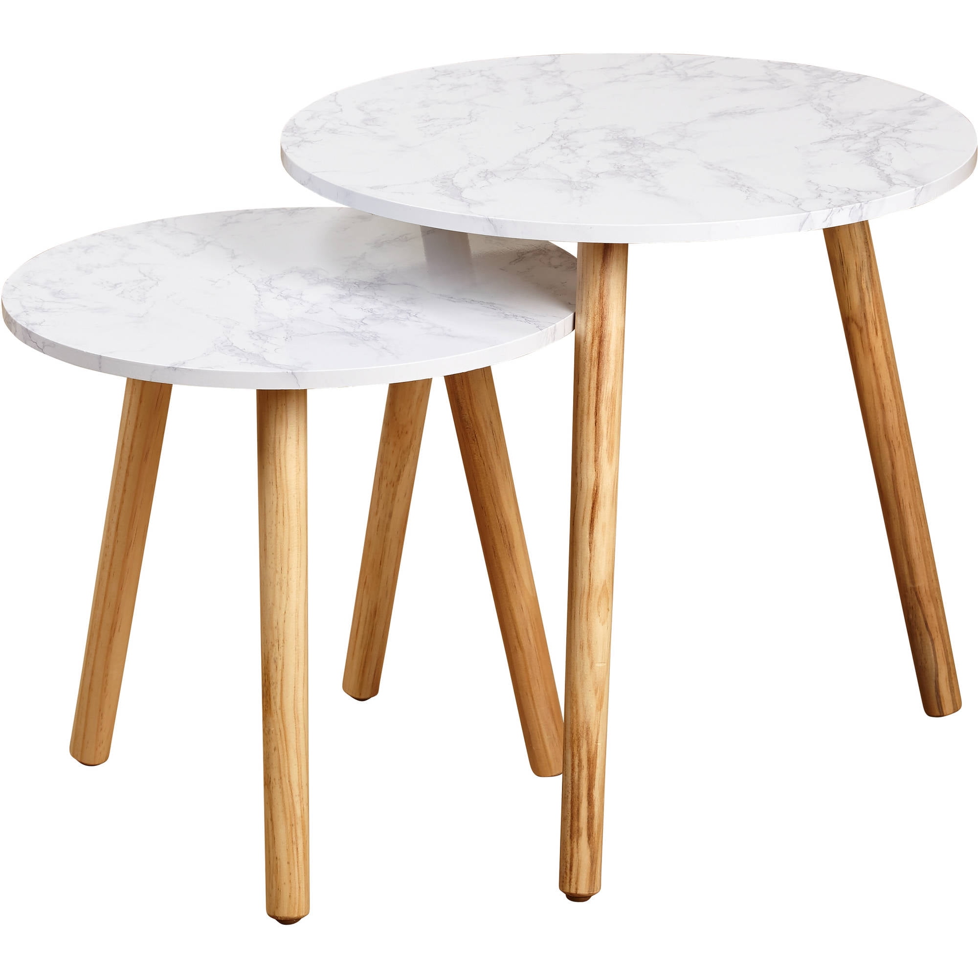 angelo isHome Darcy Modern Round Nesting End Tables, Set of 2, Natural/White Faux Marble