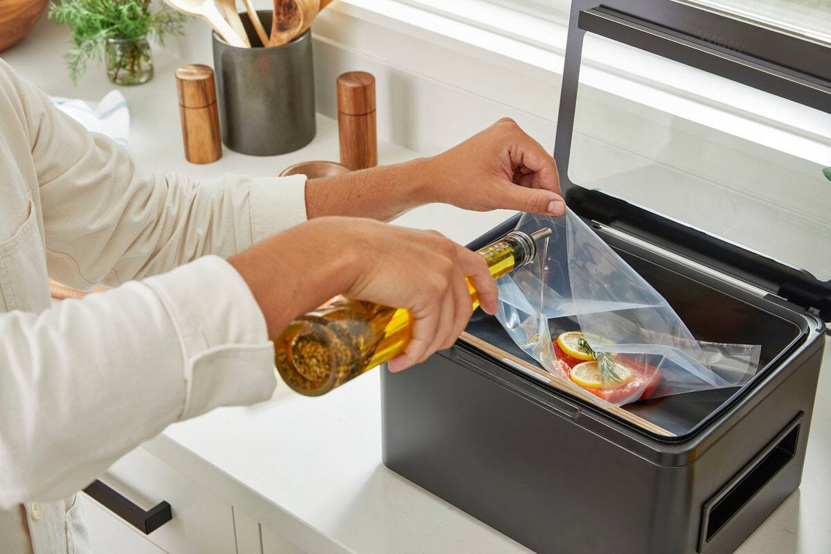 Anova Precision Chamber Vacuum Sealer is a fully operational chamber sealer that’s been sized down substantially and made more intuitive to operate than those typically found in professional kitchens. Pre-programmed settings allow you to seal like a pro, even liquids, or take advantage of the pressurized environment to make things like quick pickles, infused alcohols, flavored oils, and much more, as easy as the touch of a button.