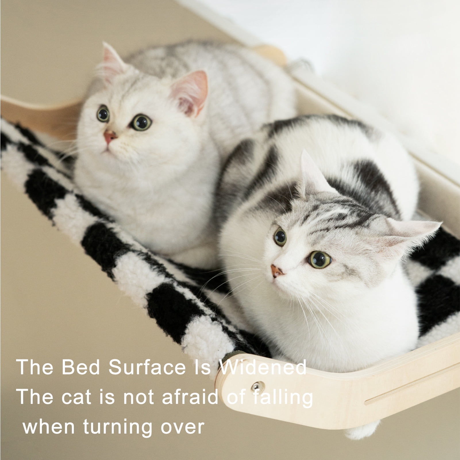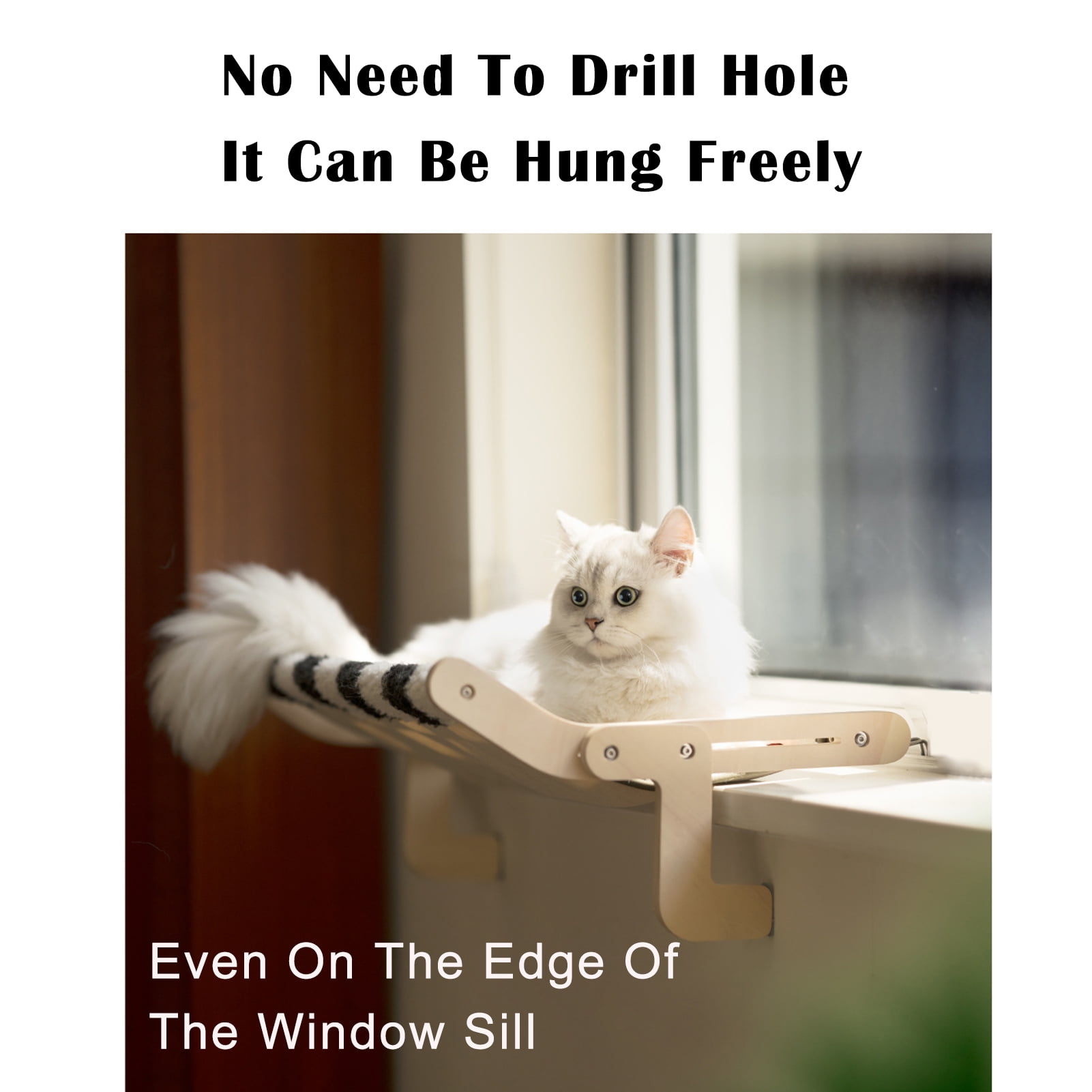 【SIMPLE ASSEMBLY & ADJUSTMENT】The assembly of this cat window hammock is easy that only a few steps are taken to set it up. After the assembly is complete, you just need to screw the thumb screws to adjust the distance between hooks and supports to fit the thickness of your window sill. Avoid the hassle of twisting the screws with a wrench for each time. 【NO DRILLING & SUCTION CUPS NEEDED FOR INSTALLATION】This cat bed is fixed on the carrier by two metal hook and supported by two wooden supports, without the need to damage the wall and the worry of the suction cups falling off. The metal hooks are widened. The contact surface with the windowsill is larger that protects your window from being damaged by the concentrated force. 【FURRY FABRIC COVER】It is soft and skin-friendly without chemical smell. Let your cats feel warmer and more comfortable while lying in this resting seat. The plush cover can be easily removed for wash with velcro design. 【WIDE-RANGE USE】Anself cat bed is design for using on window sills. Cats can enjoy sunbathing and watching outside on it. It can also be placed on the bedsides, allowing you and your cat to accompany each other and keeping cat hair from getting all over the bed. Drawers, cabinets would also be the applicable places. 【Professional Customers Service】We provide 12-month warranty and 24-hours after-sale service. If you don’t know how to use it, you can contact us for detailed instructions. We have a very friendly service.