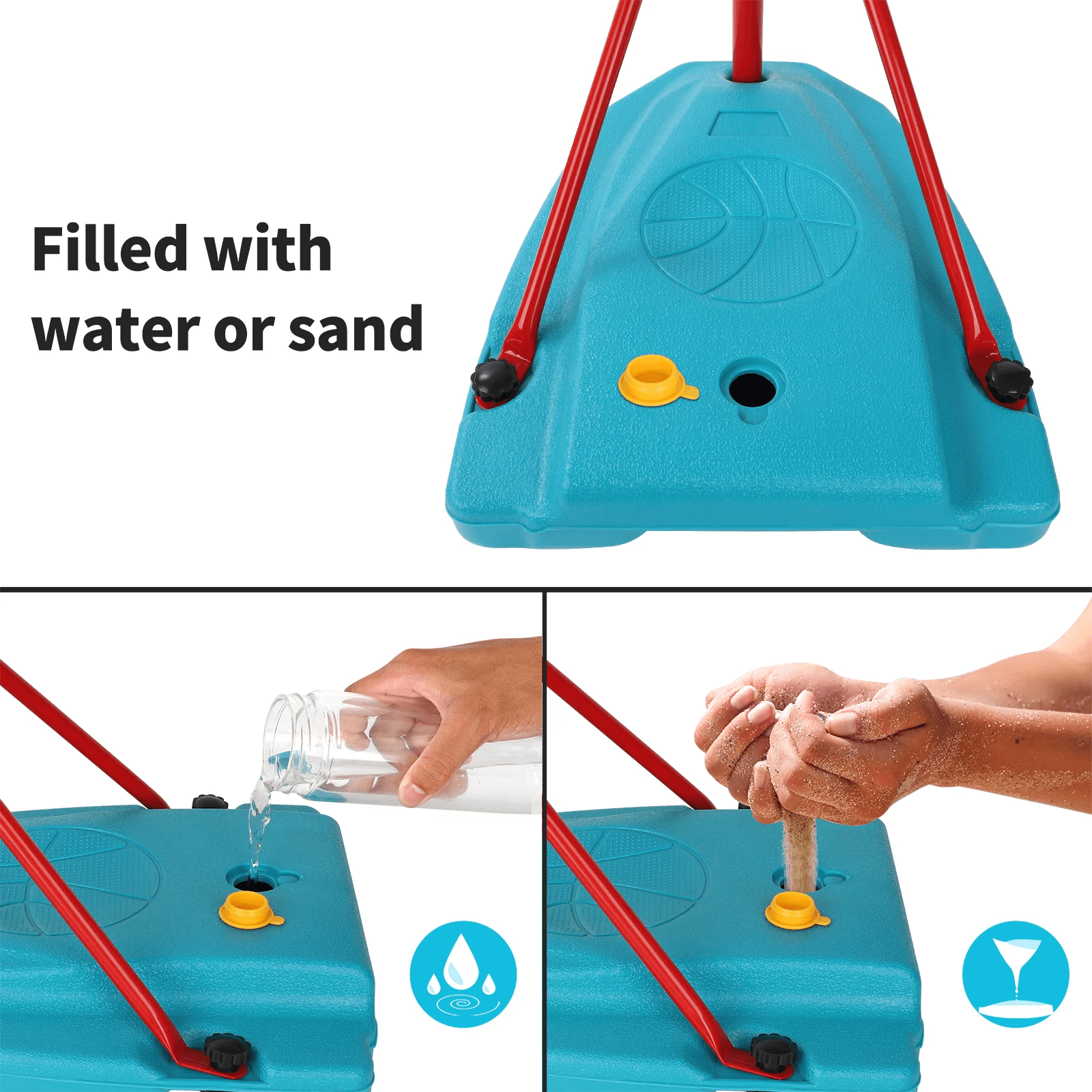 Ant Class Height-Adjustable Toddler Basketball Hoop with Balls Set Our basketball stand uses a tripod structure and comes with as and bag, to make the base more stable, so that you do not worry about it will be tip over when you shoot. The height adjustable stand basketball goal was designed for kids age 3 to 8. The rim diameter is 9.8 inch and the basketball diameter is 7.1 inch, not suit for the regular basketball. Features: Can be Hung-There are 2 holes on the top of the backboard.You can hang it with 2 hooks and stick it on the wall or door. 3 Mini Basketballs-Ant Class toddler basketball hoop set comes with more and higher quality mini basketballs than others. Indoor & Outdoor Basketball Hoop-The size of the base is 16.3*12 8, which is very space saving. The basketball system is detachable and easy to carry. Whether it is indoors or courtyards. children can enjoy the basketball game. Various Ways to play-The basketball set is rain- and sun-proof, it is not only a toy for little ones, but can also be used in any occasions you can imagine, such as a competitive game or pool party, for even more fun. An Ideal Gift-A good choice can free your kids from video games or TV. Whether as a birthday gift or Christmas gift our stand basketball hoop is very perfect. Specifications: Backboard: 15 9 *12.4″ Diameter of Ball: 7.1″ Diameter of Basket: 9 8. Height: 2.9 ft -6 2 ft Basketball Hoop Base:16.3*12.8* 3.1″ Package Includes: 1 x Stand Basketball Hoop 1 x Pump 2 x Net 3 x Basketball