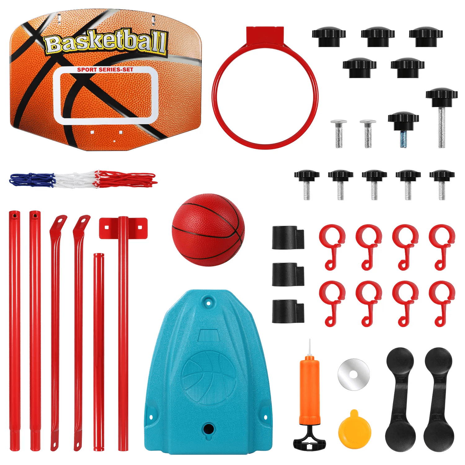 Easy to Set up for Mobile Play: This basketball play set including: backboard, rim, net, ball, pump, stand, base, and other accessories. Easy to install and assemble. It is small size basketball goal, you could take it indoor to outdoor conveniently. Great indoor toys/ outdoor toys for toddler kids. Adjustable Basketball Hoop for Kids: This basketball stand can be adjusted from 2.8 ft to 6.2 ft, it suits age 2 to 7 kids, which is great for growing kids. What’s more, you can leave it low when your baby wants to dunk on it or place it higher when he wants to shoot the ball and practice his skills Development Toys for Toddlers: It good for your child to develops social, motor skills and hand-eye coordination, and increase their interests in sport. Great sport toys for toddler boys and girls, outside & outdoor toys for kids ages 2-4 3-5 4-8. Fun Team Game & Family Game: Playing basketball with brothers /sisters or other member in family, provided great entertainment for a family reunion. Safe Basketball Hoop Toy: Our basketball set is BPA free and lead free. Safe toys for your kids. Great Birthday gift for toddler boys girls age 2 3 4 5 6 7 8 years old. Outside & outdoor toys for toddlers 1-3 2-4 4-8.