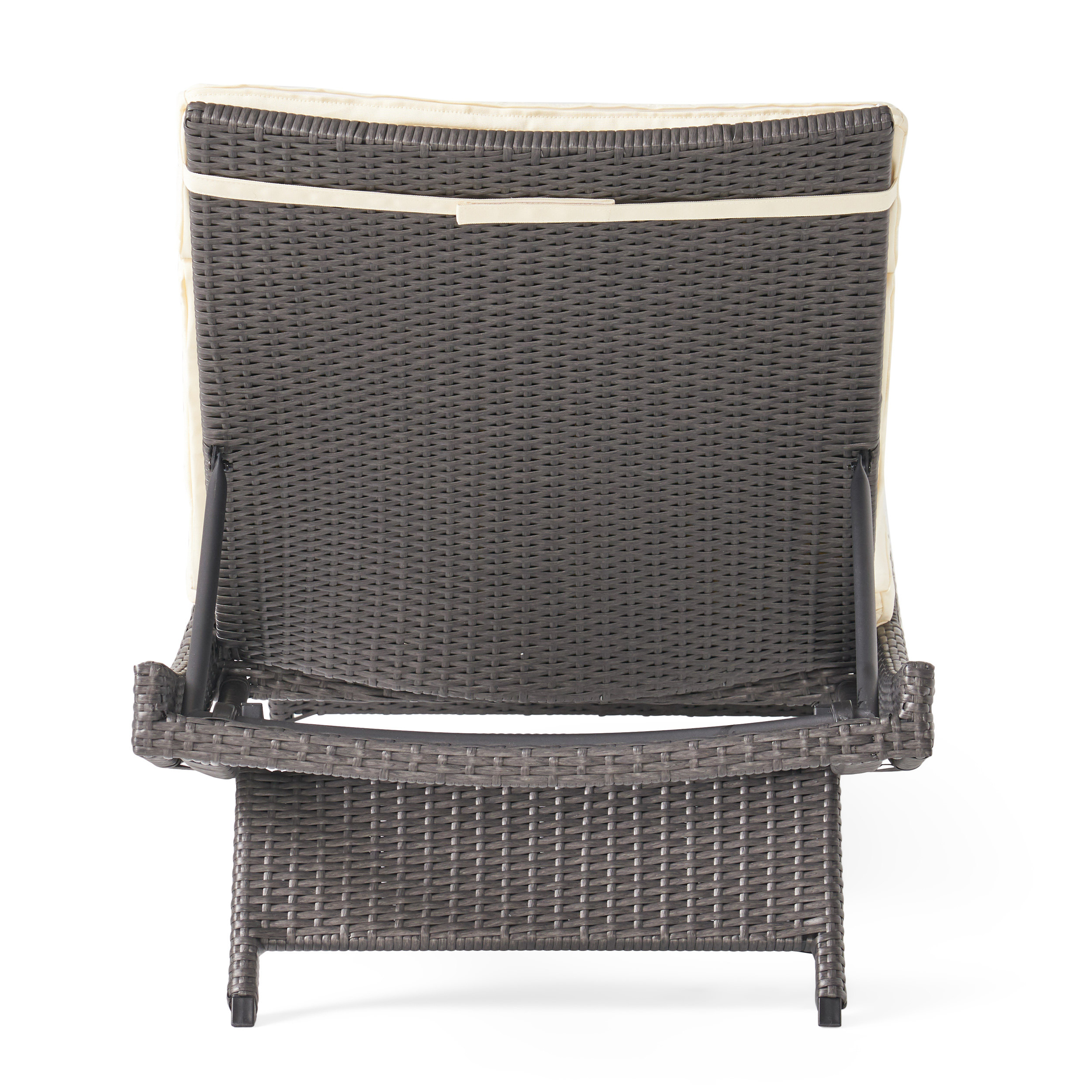 Anthony Outdoor Wicker Adjustable Chaise Lounge with Cushion, Grey, Beige
