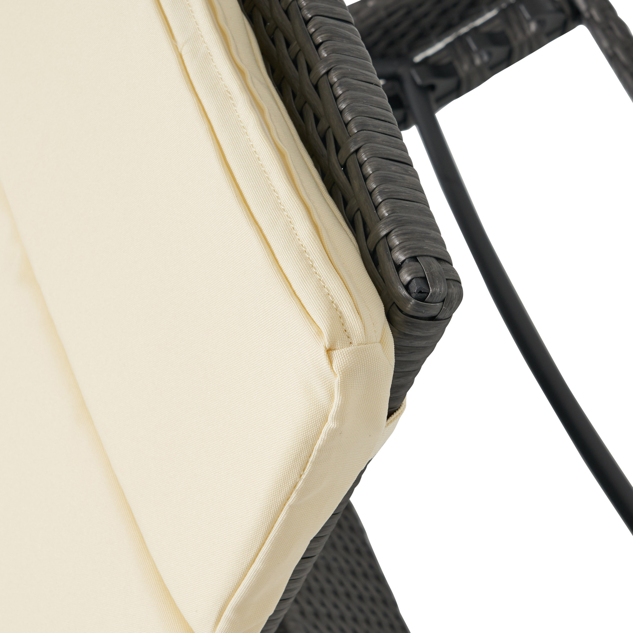 Includes: One (1) Lounge Chair and One (1) Lounge Chair Cushion Materials: Iron and PE Cushion Material: Polyester Color: Grey Cushion Color: Beige No Assembly Required Dimensions: 79.53 inches deep x 27.56 inches wide x 13.78 inches high”