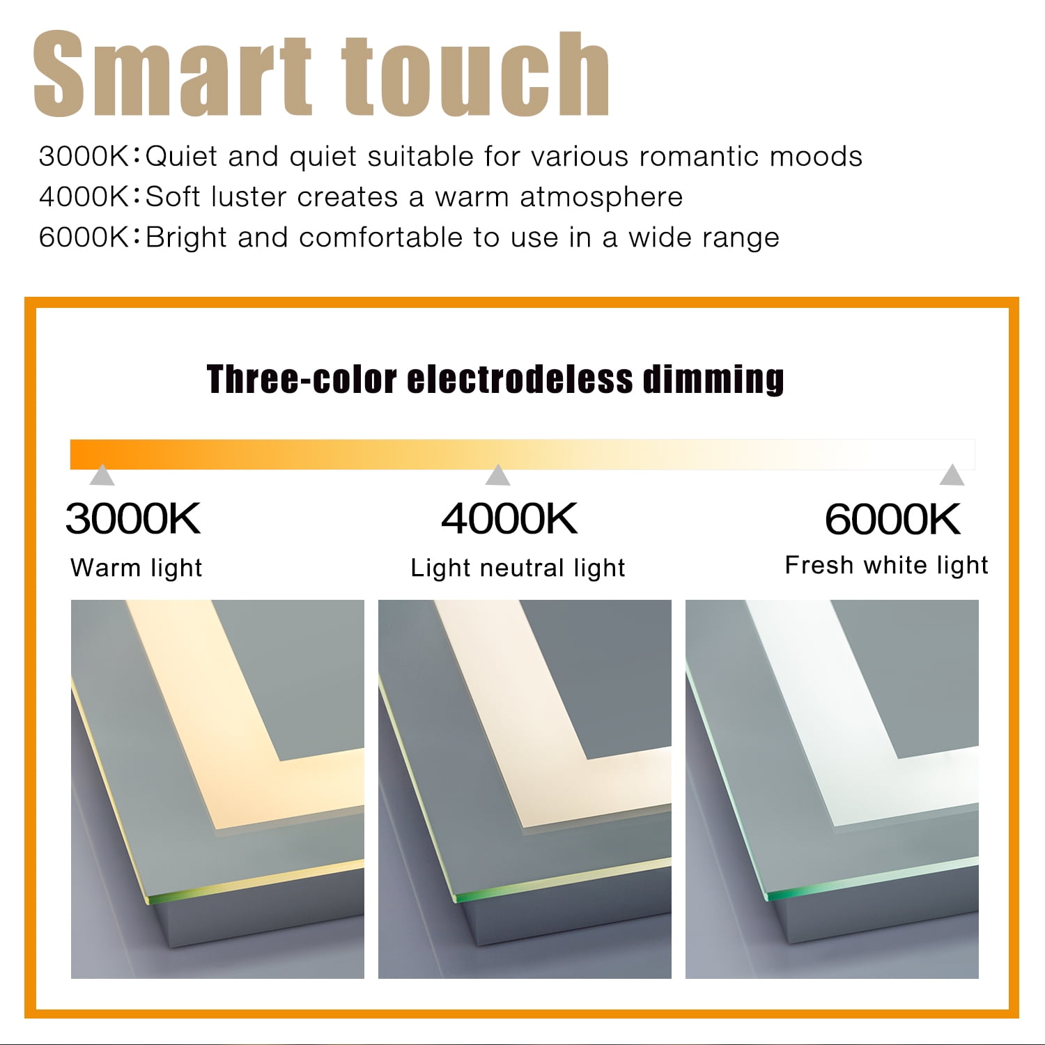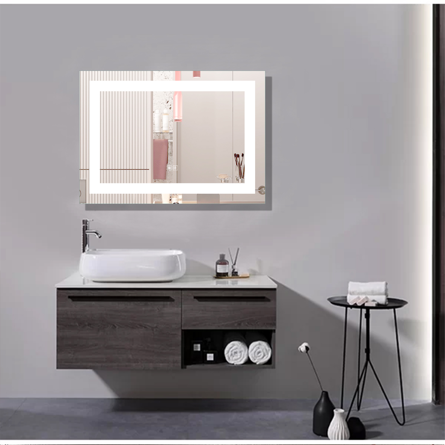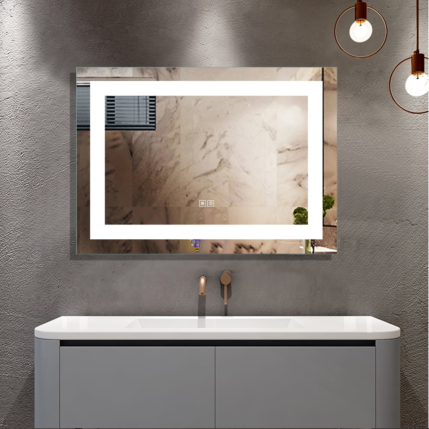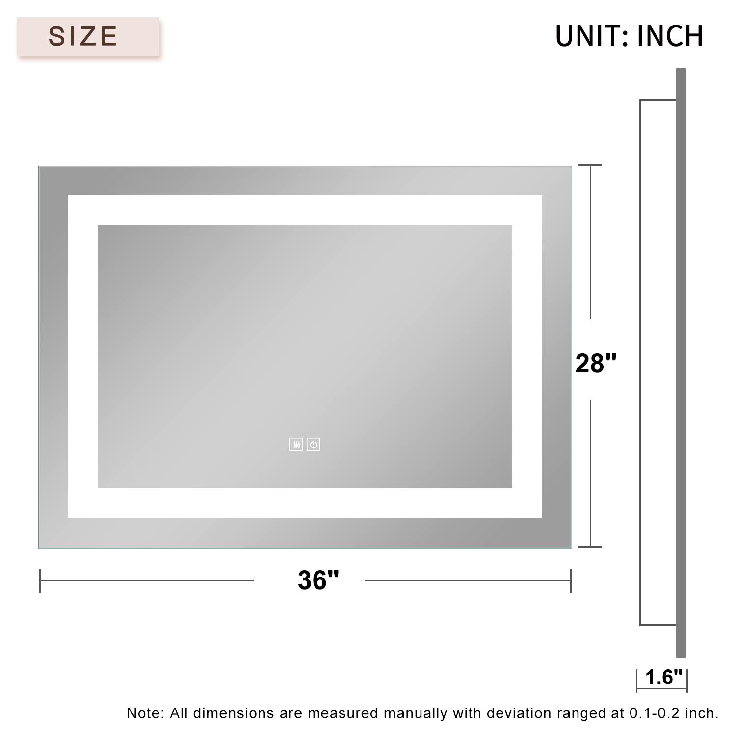 Anti-Fog Wall Mounted LED Frameless Mirrors with Dimming Touch Switch 36″ x 28″ Straight Corner