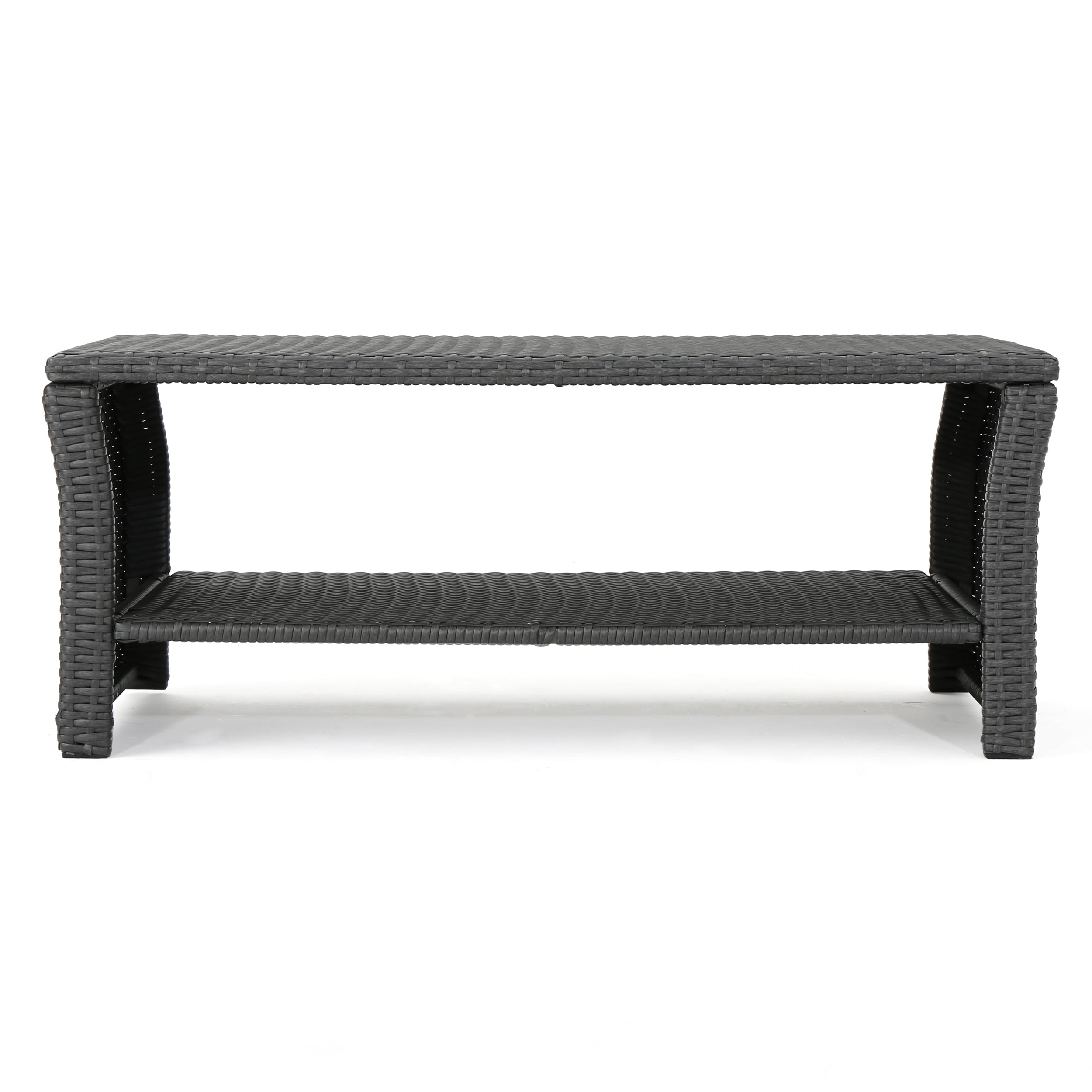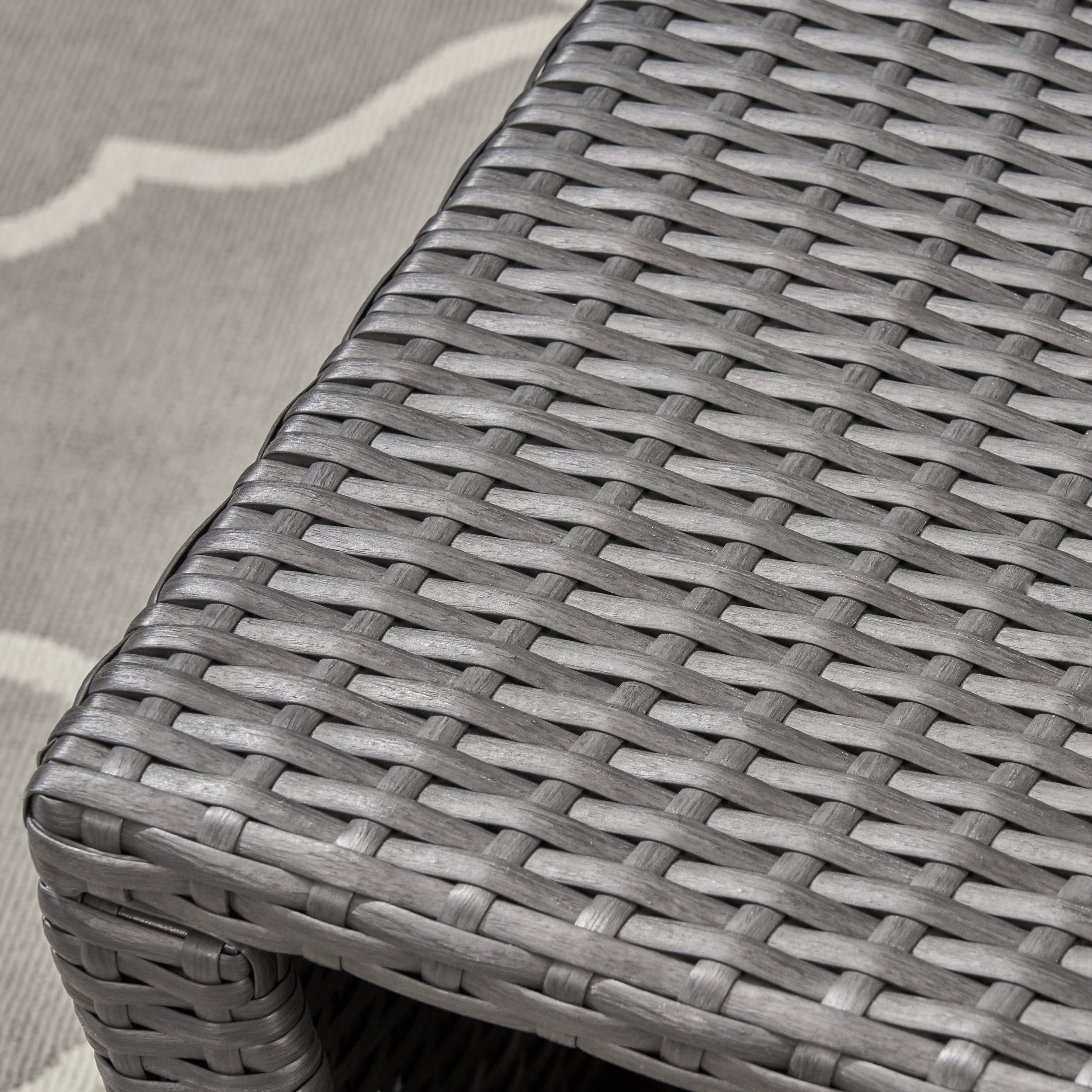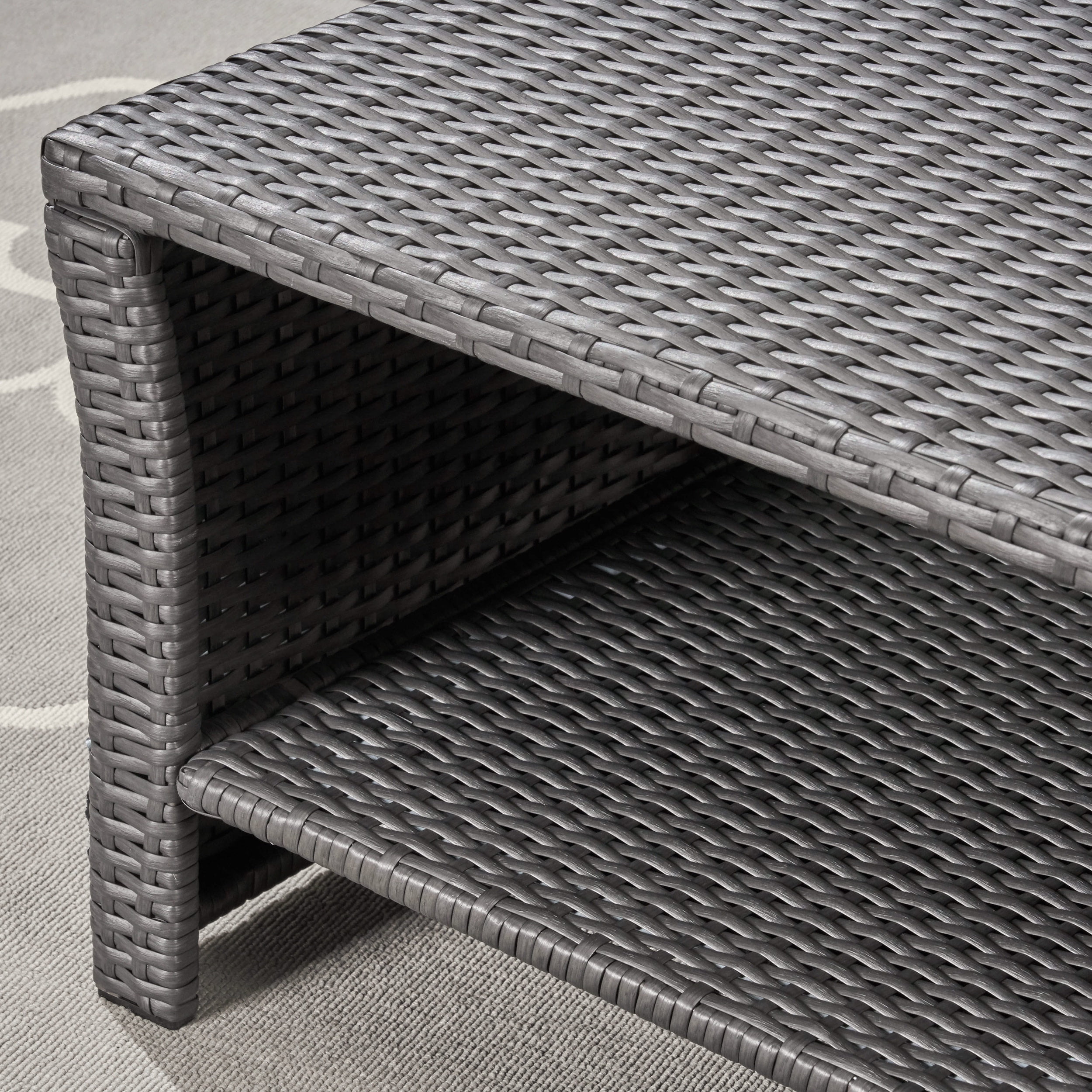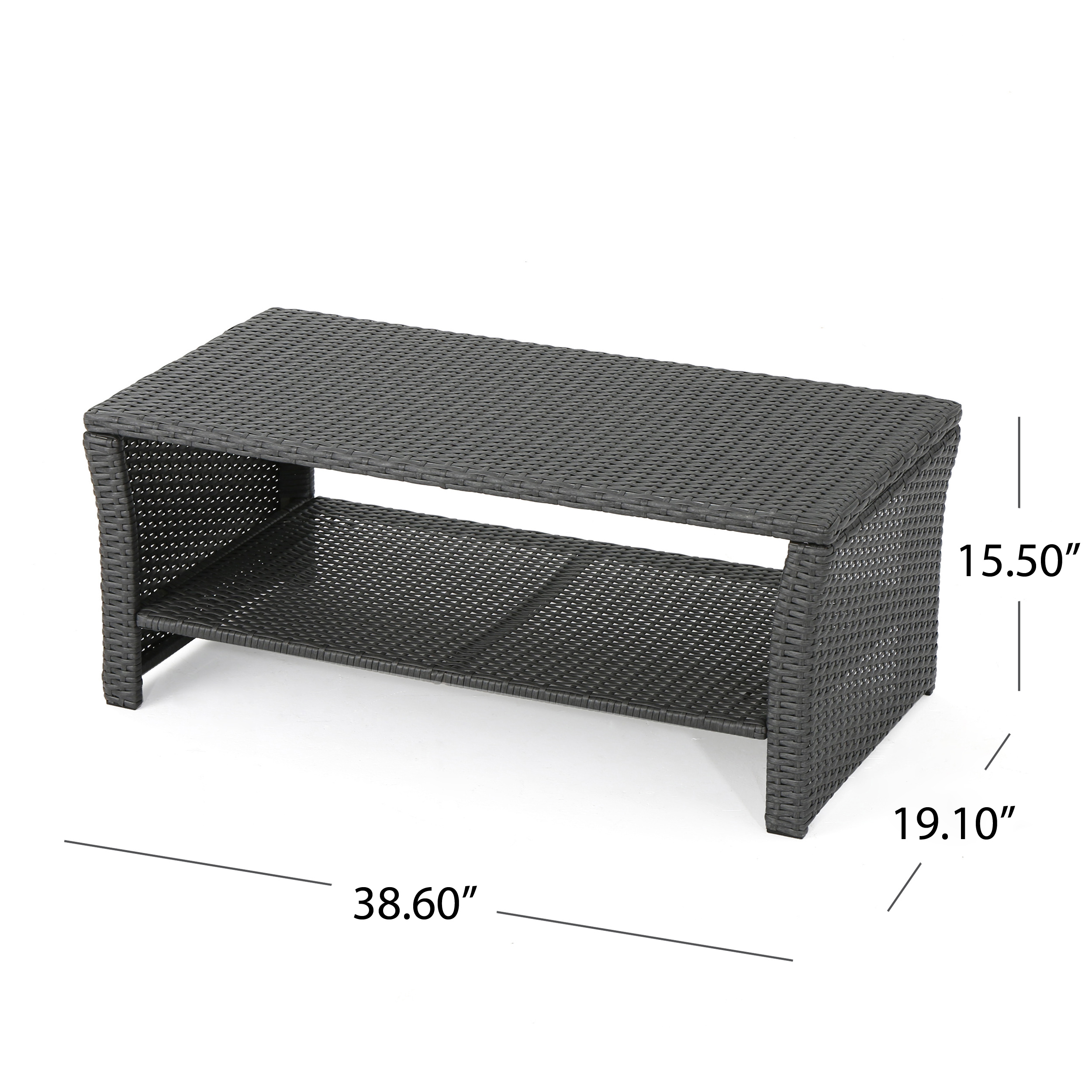 Includes: One (1) Outdoor Coffee Table Material: Polyethylene Wicker Frame Material: Steel Finish: Gray Hand Crafted Details Some Assembly Required Product Dimensions: 19.10 inches deep x 38.60 inches wide x 15.50 inches high