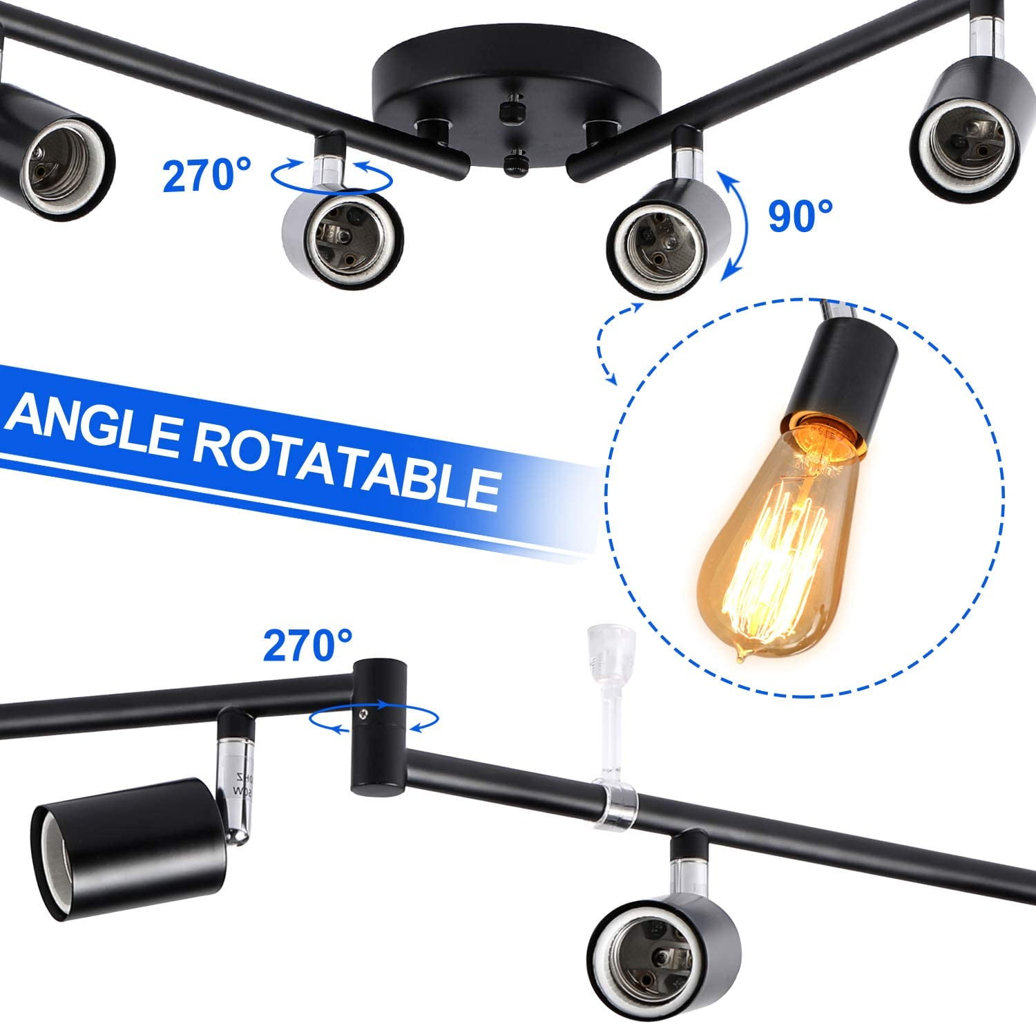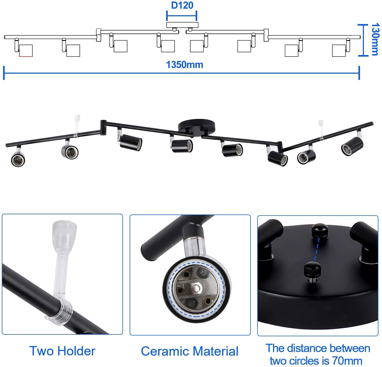 E26 Socket Bulbs compatible: 50 Watt Max for each head (bulb not included) compatible with LED, Halogen CFL bulbs with E26 Screw Base. If need dimmable light function, dimmable bulbs and compatible dimmer switch are needed. Assembled dimensions for this track lighting fixture: 60″x 4.33″ x 8.70″ Neat & Unique Design: This ANTOTEN versatile 8 light track light features a flexible bar and adjustable track heads, providing a sleek design along with functional lighting to any rooms in your home. Black finish is more eye-catching and add an special flavor to the surroundings. Flex Track Lighting: 4 swing arms of this fixture can make “I”, “M”, “W”, “Z”, “L” or “U” shaped patterns. Easy to adjust in several different ways and stay in desired positions. Perfect for DIY your own track lighting projects to meet the flexible lighting design. easily pivot each track head to different desired directions for highlight. Each independent light head can be rotated 270° horizontally, 90° vertically. Swivel, turn, and angle to different directions including position straight down. Easy to Install: Each kit comes with 2 standing supports, allowing you to fix the arms in certain position if you don’t want to re-position the track light bar after installation. The track lights can be used as ceiling spotlights or DIY wall lights. Even if for a slopped or vaulted ceiling or wall, it can be easily installed, by yourself(if you are capable) or a licensed electrician.