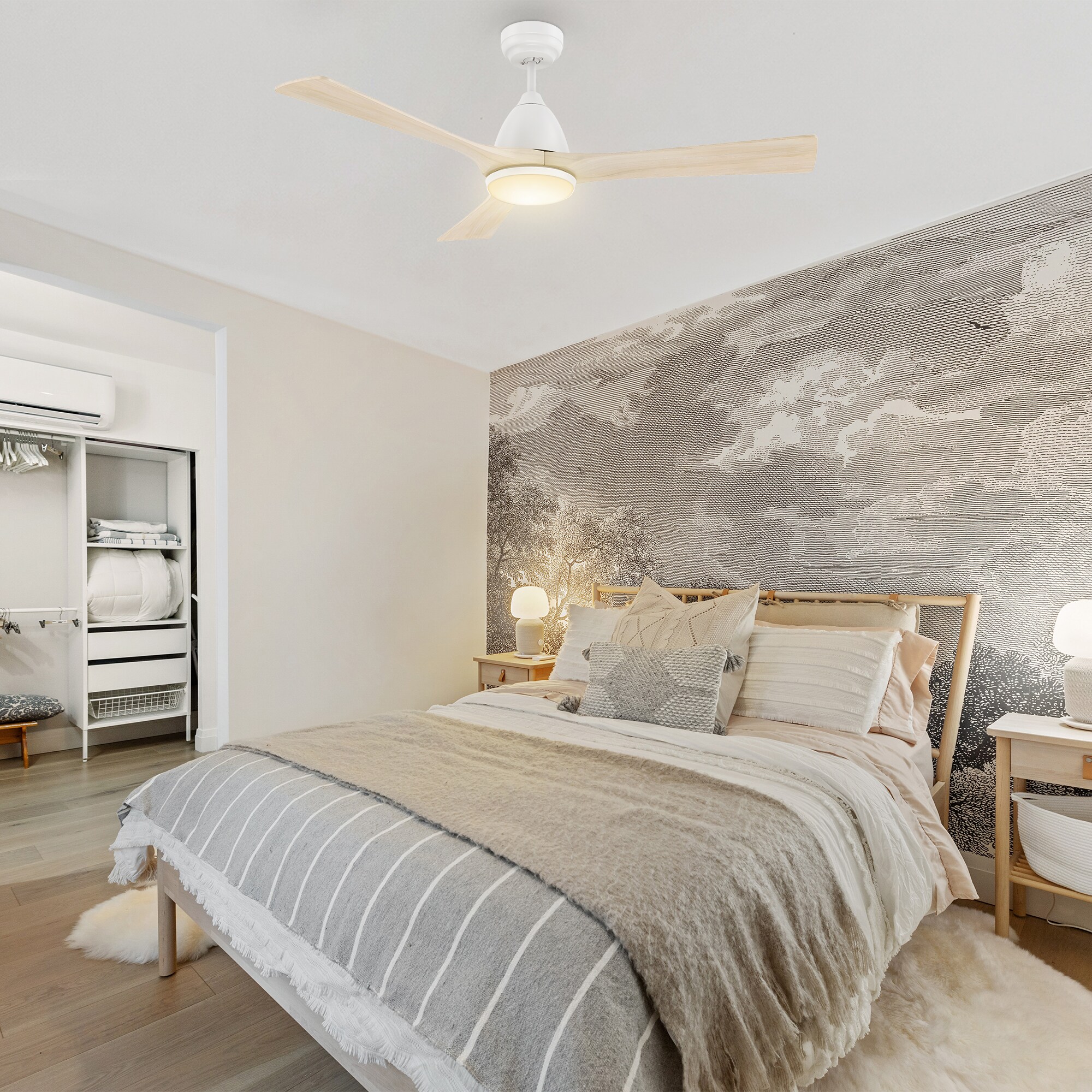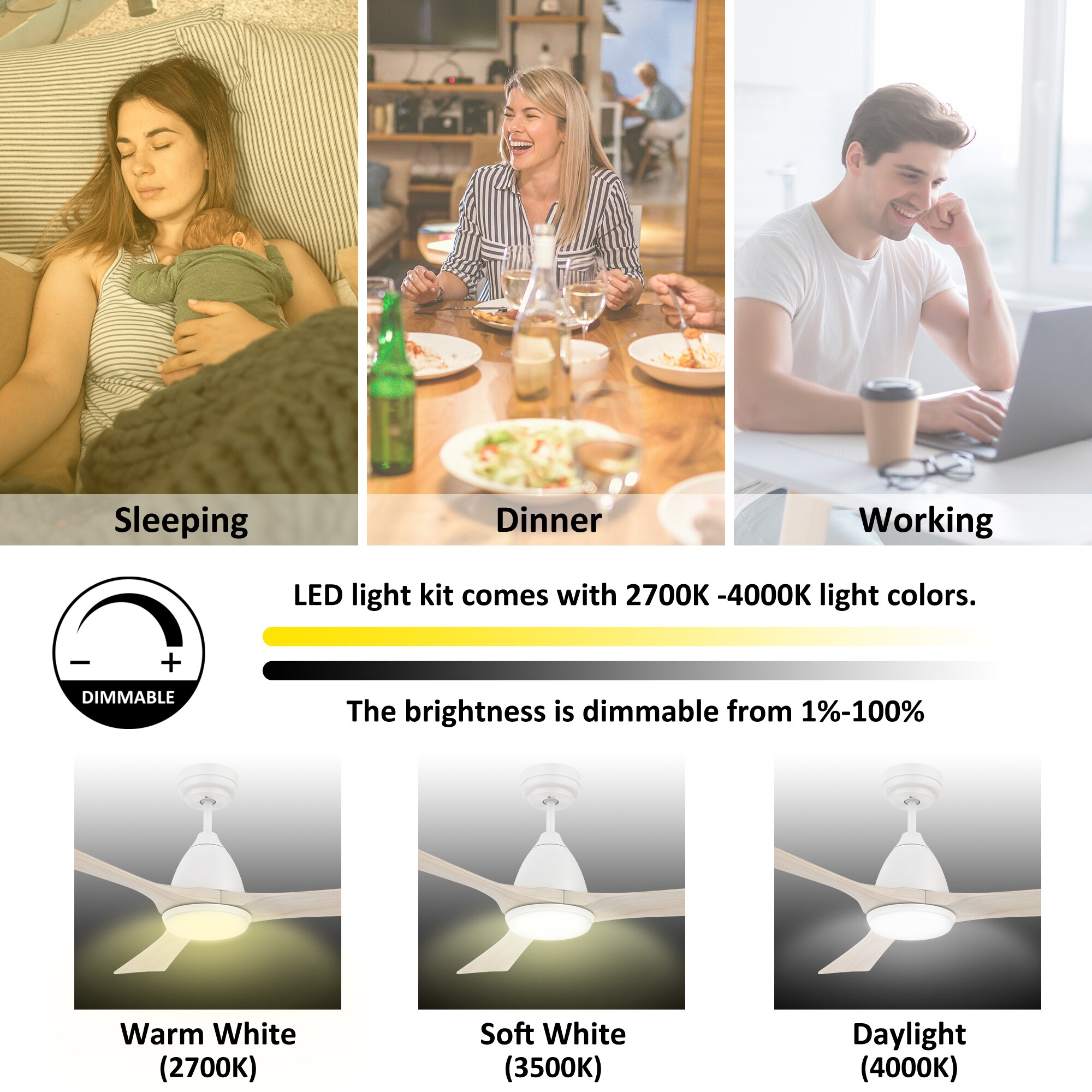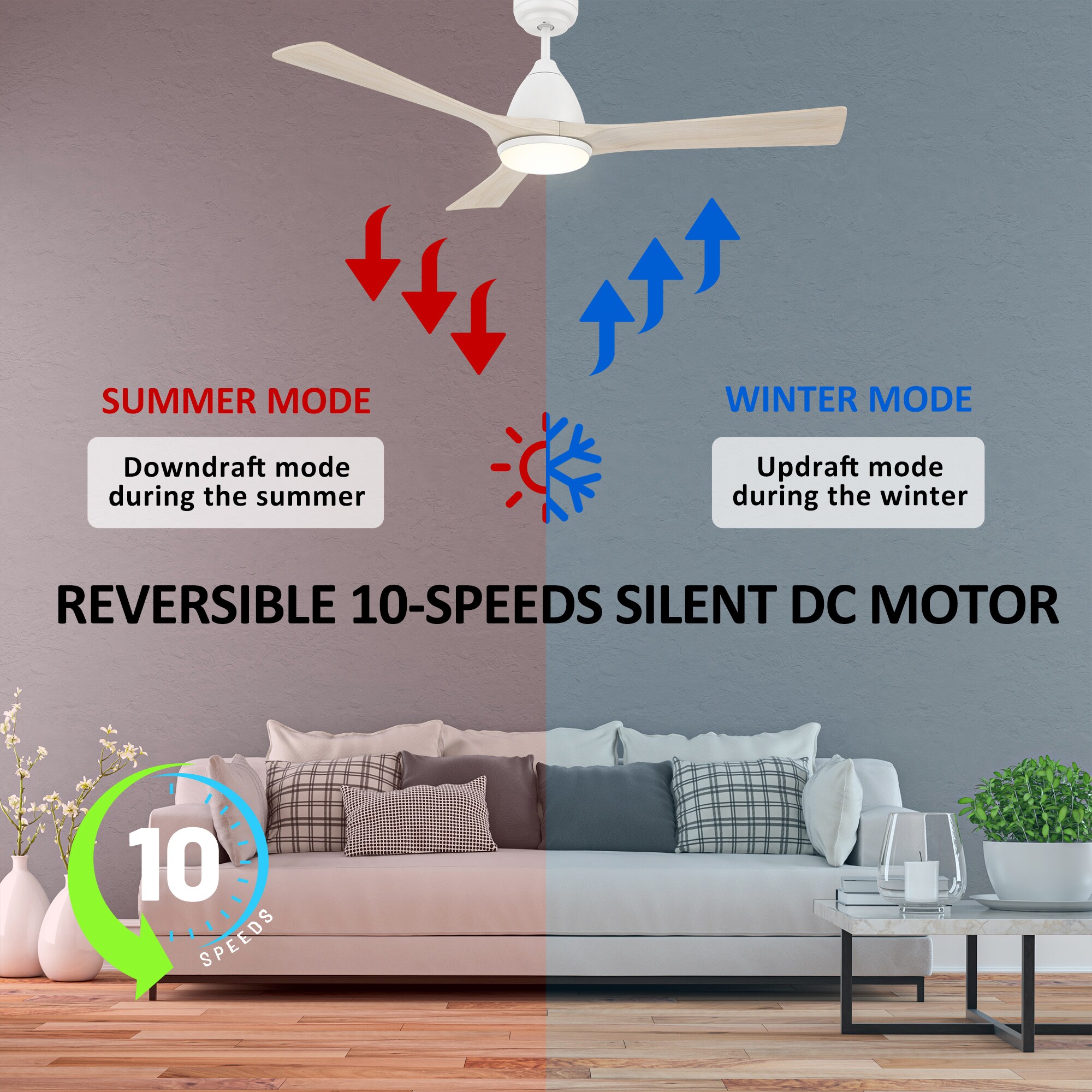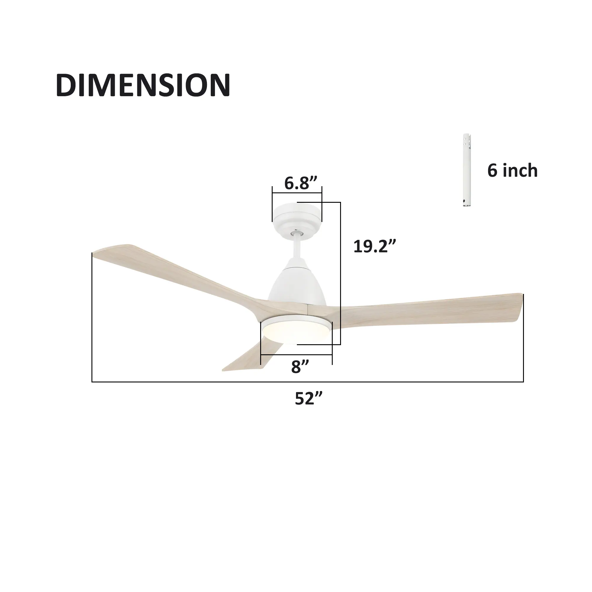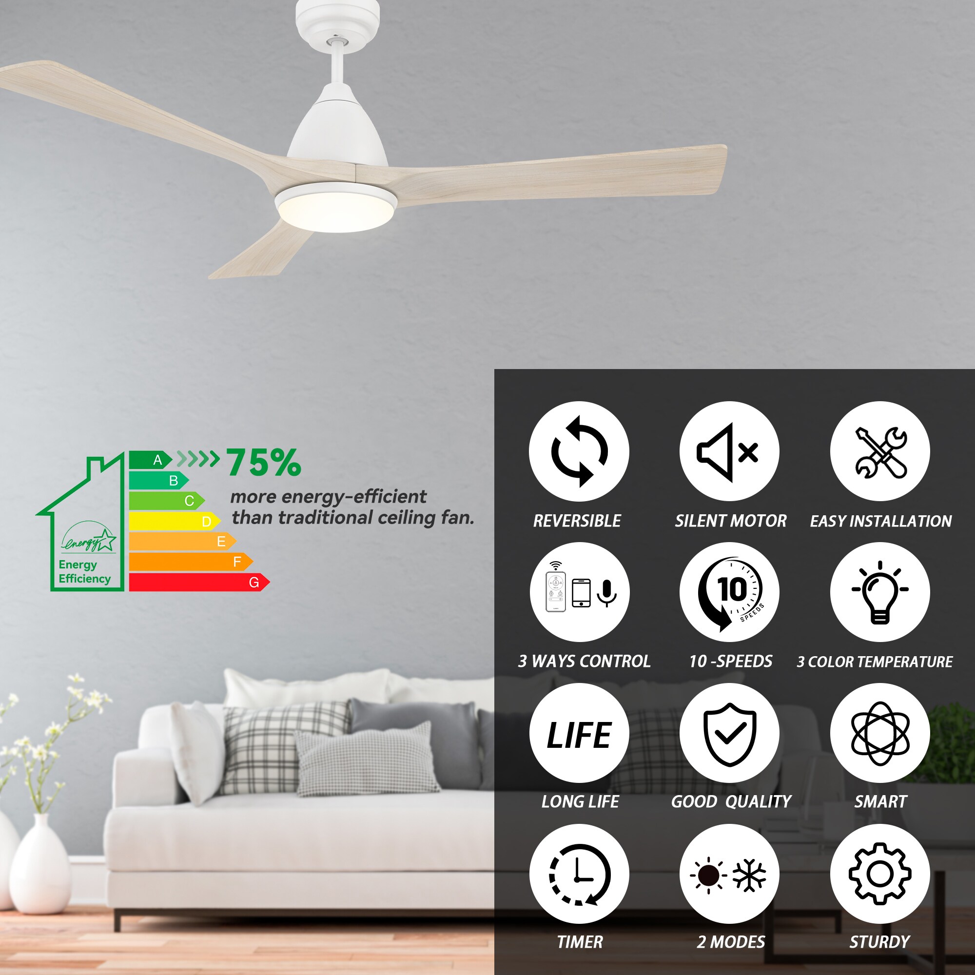Experience optimal comfort, illumination, and sophistication with the Antrim 52-in smart ceiling fan. Designed for spacious indoor living areas, this fan combines sleek modern aesthetics with functionality. The White finish adds an element of simplicity, while the elegant Solid Wood blades ensure durability. With an integrated 4000K LED day light, it provides ample illumination. Enjoy the convenience of controlling the fan through the included remote control, Wi-Fi apps, Siri Shortcut, or voice commands via Amazon Alexa and Google Home Assistant. Personalize your fan preferences effortlessly with these advanced technologies.