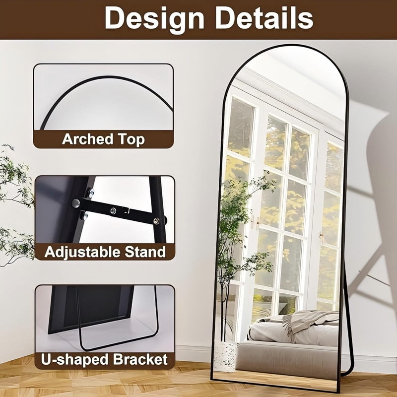 Anyrose 64.2″x 21.3″ Arched Full Length Mirror Floor Mirror with Stand Free Standing, Black
