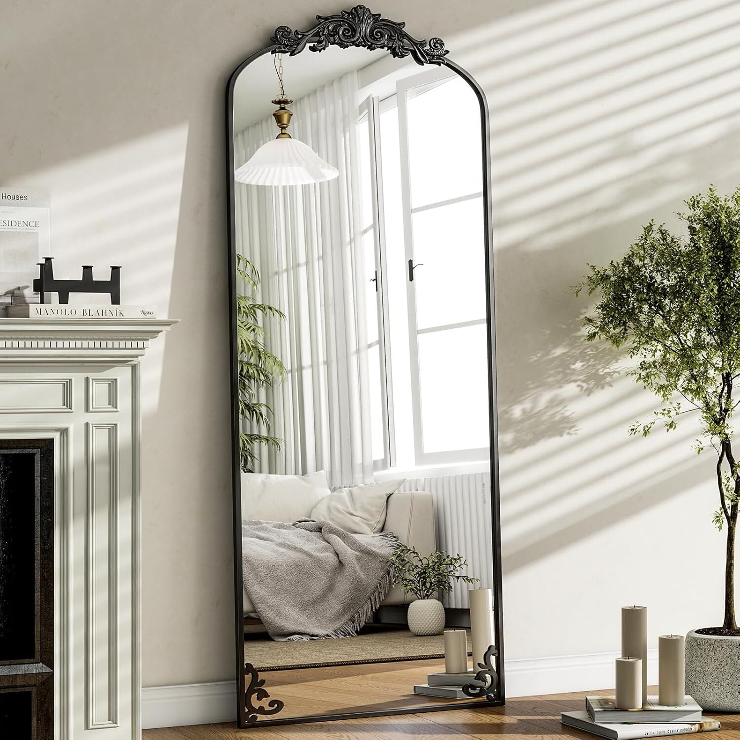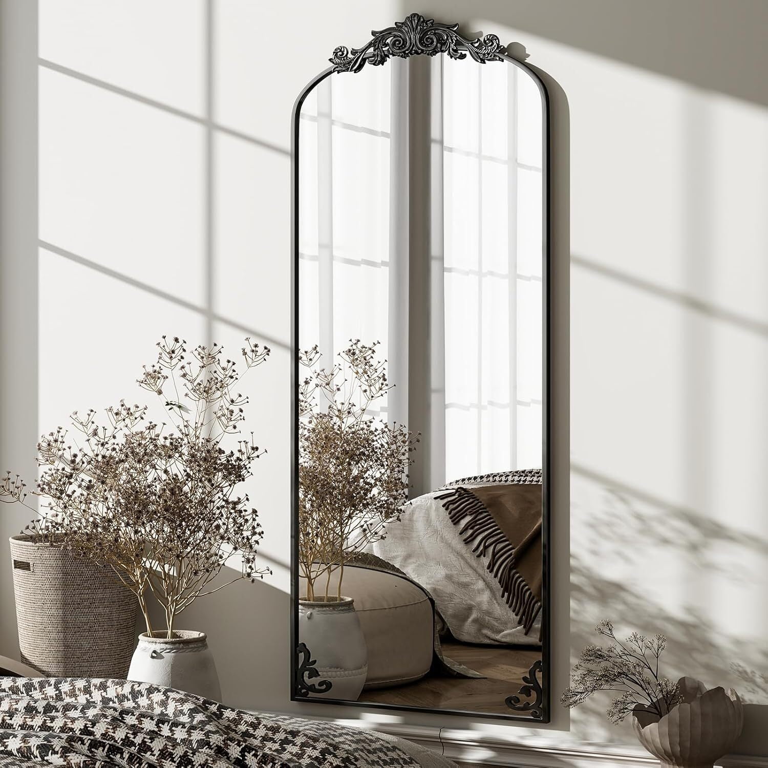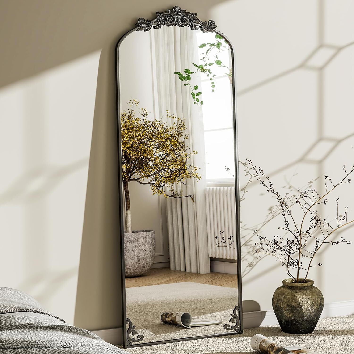Anyrose 64″x 21″ Vintage Full Length Mirror Arched Baroque Mirror Freestanding,Black