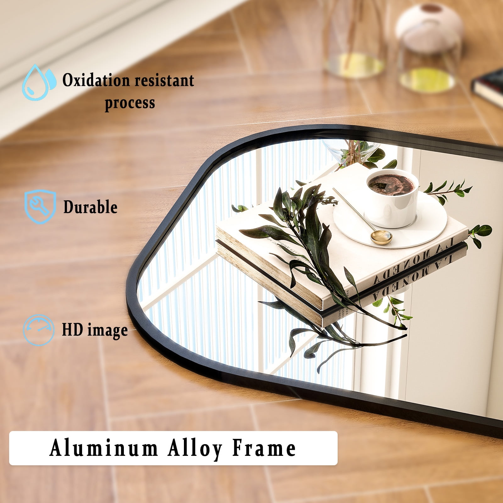 SHATTERPROOF DESIGN: The mirror is made of high quality shatterproof glass which is clearer and safer. VERSATILE: The mirror has a unique shape design, suitable for decorating any style of room, making your room more fashionable. FRAME DESIGN: Aluminum alloy frame, lightweight and beautiful. EASY INSTALLATION: The package includes the accessories needed for installation, safe installation will not take a long time.