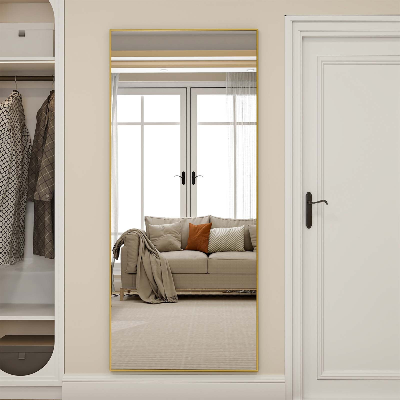 Anyrose 71″x 26″ Full Length Mirror Rectangular Floor Standing Mirror Wall Mounted, Gold