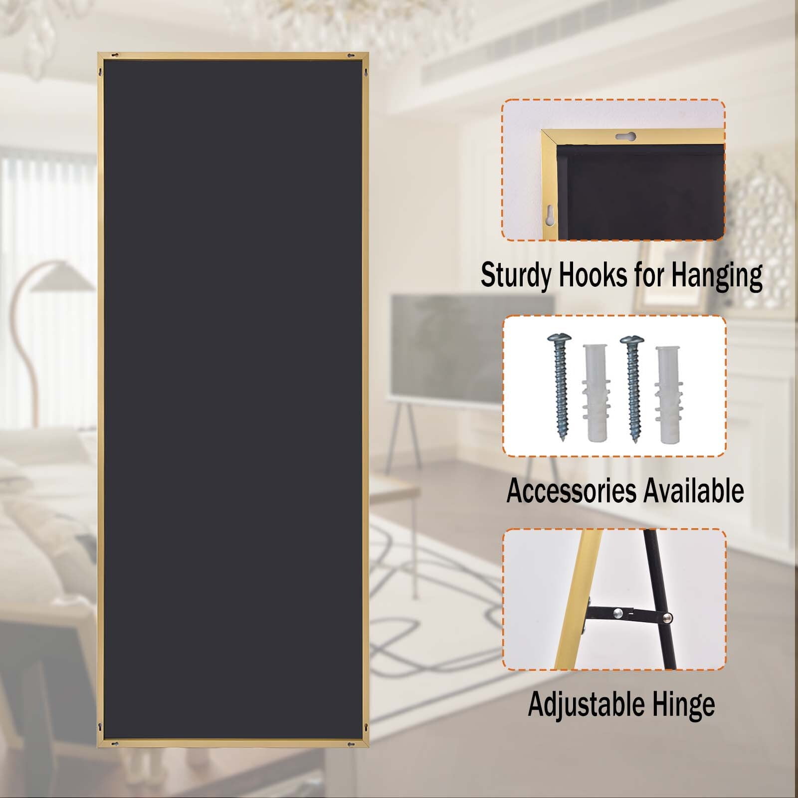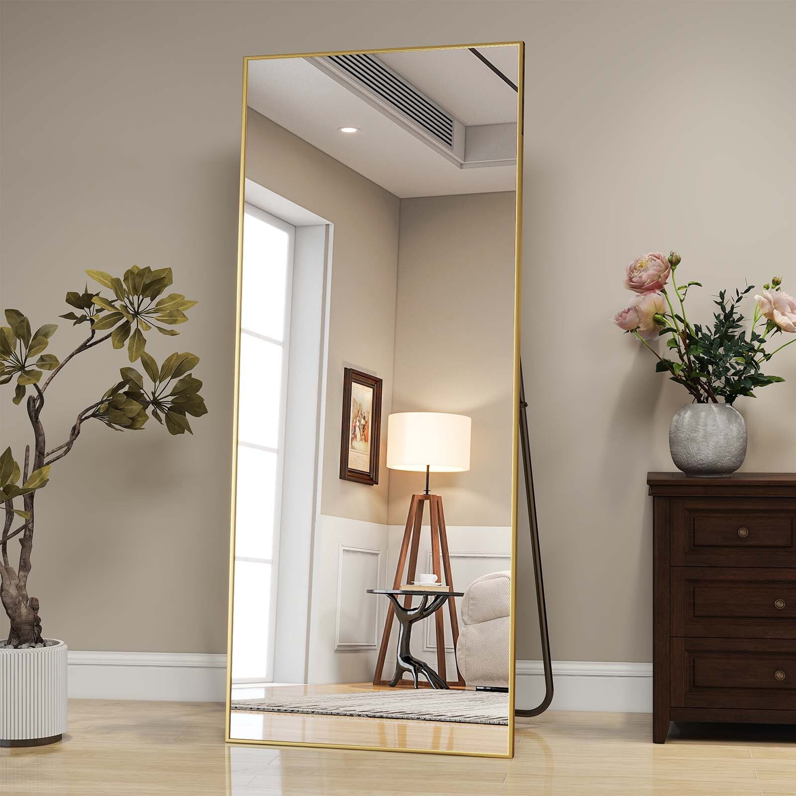 Full Length Mirror: This mirror features a sleek aluminum frame designed for long-lasting durability and modern elegance, with a reinforced shatter-resistant back for safety. High Definition Glass: Experience flawless reflections through premium mirrored glass that delivers crystal-clear, distortion-free imaging. Elegant design: Provides complete head-to-toe visibility for the perfect look, whether you’re getting ready for work, a social event, or a special occasion. Multiple placement: Designed for effortless versatility – stand it securely on the floor, mount it flush to your wall, or simply lean it against any surface.