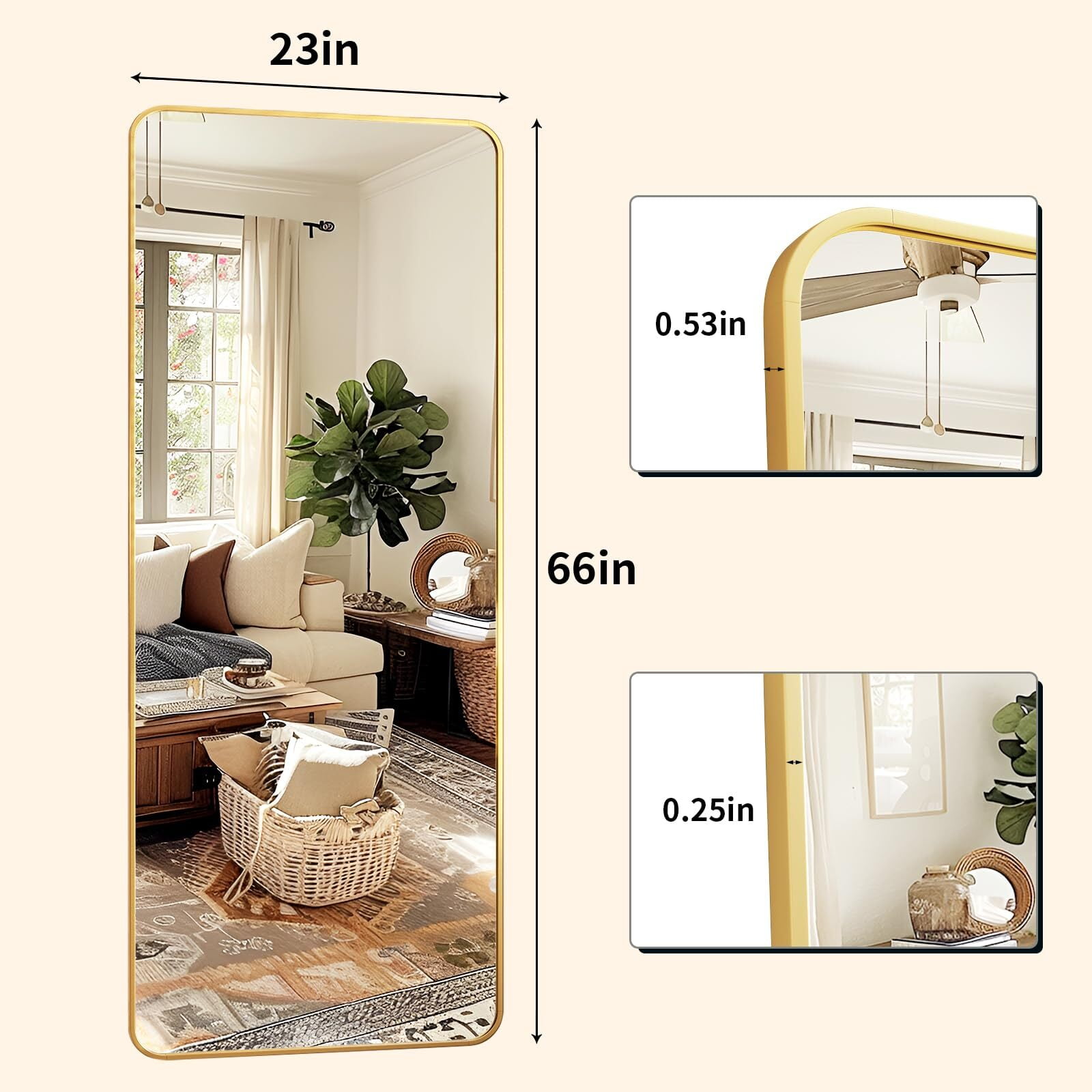 AnyRose Full Length Mirror 23″x66″, Large Floor Mirror with Rectangle Rounded Corners, Aluminum Alloy Frame,Gold