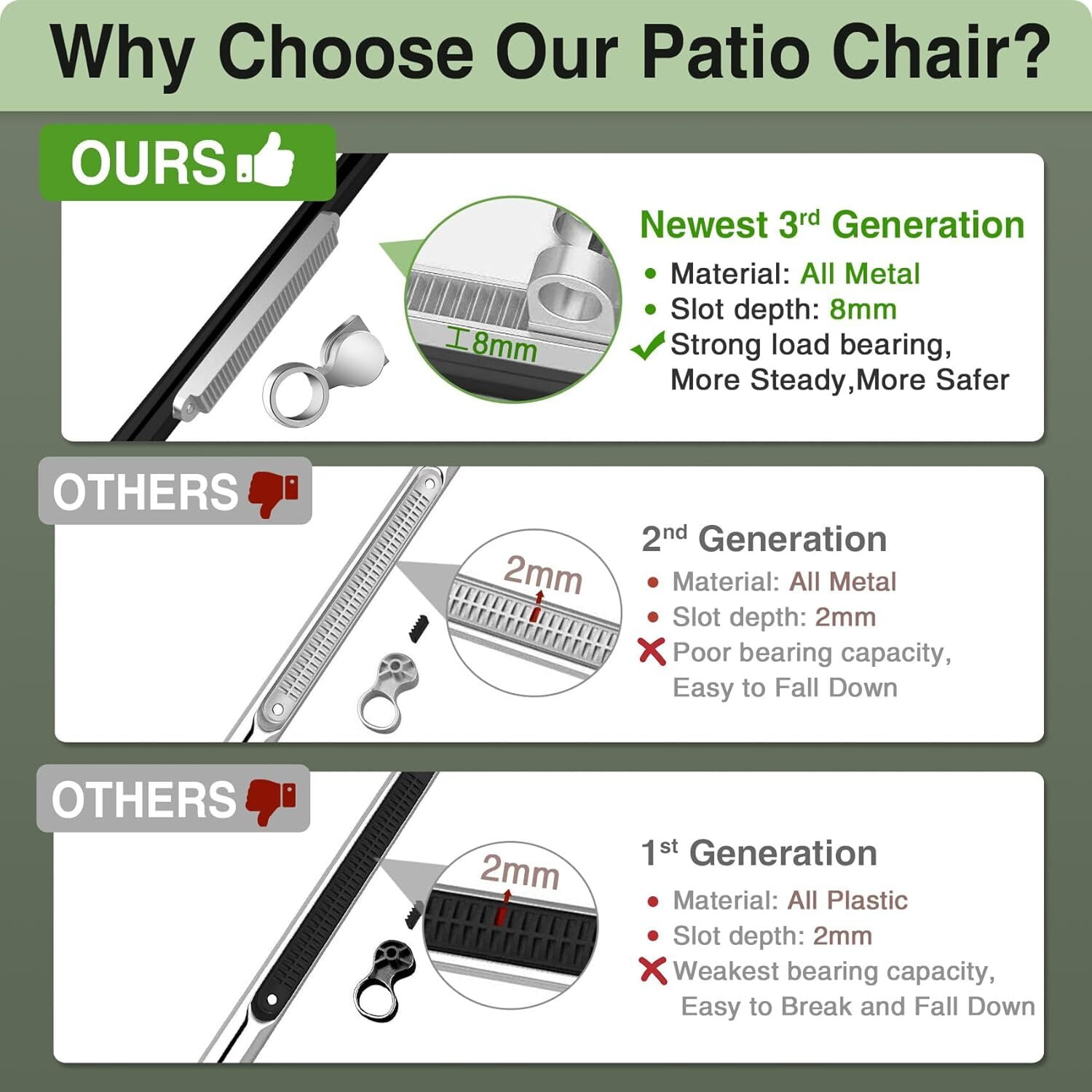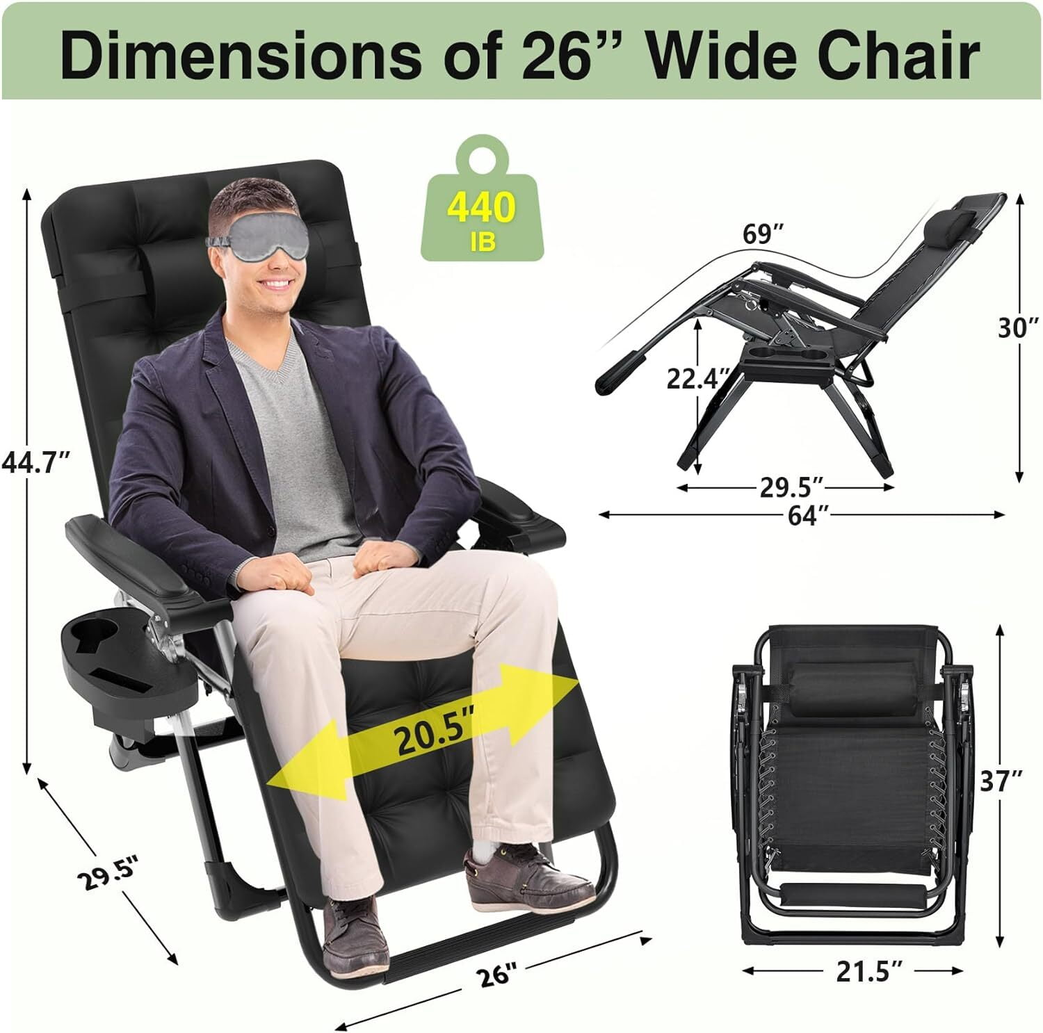 Anyrose Adjustable Chair: Embrace your convenience! Our Zero gravity chair ensures stability and safety through a reinforced steel tube structure, preventing wobbling and collapsing, and providing greater load-bearing capacity, can support weights of up to 440 pounds. Whether you want to relax with a book or take a break, this comfortable zero gravity lawn chair is a great ideal solution!