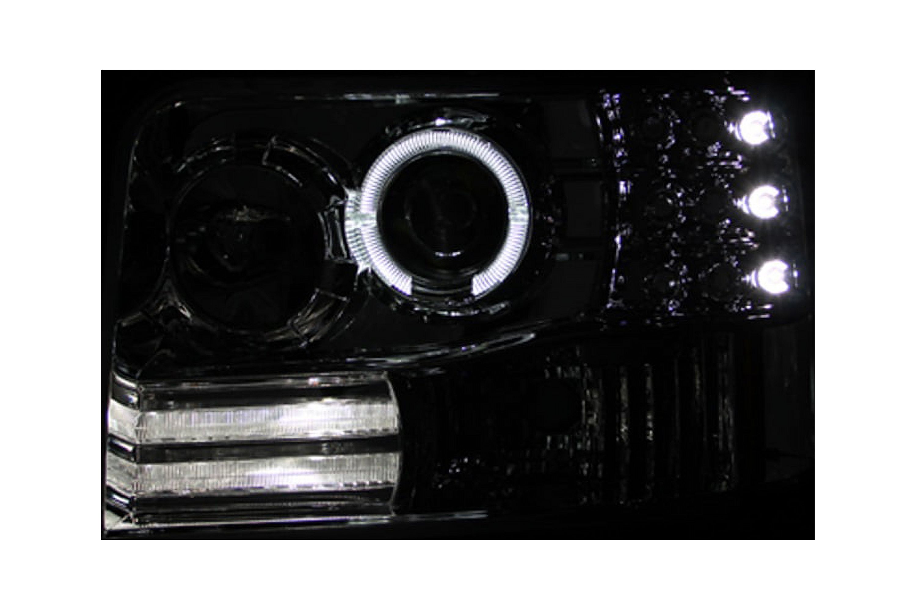Black Housing Projector Headlight Set, w/Halo, Clear Lens, Black Housing, Pair, w/Side Marker And Parking Lights Guaranteed To Improve Your Vehicles Appearance. Rigorously Tested For Fit And Function. Simple Plug And Play. No Modifications Required. Easy Installation Using Common Hand Tools. Uses Stock Mounting Locations And Hardware. D.O.T. Compliant To S.A.E. Standards. Sold As A Pair.