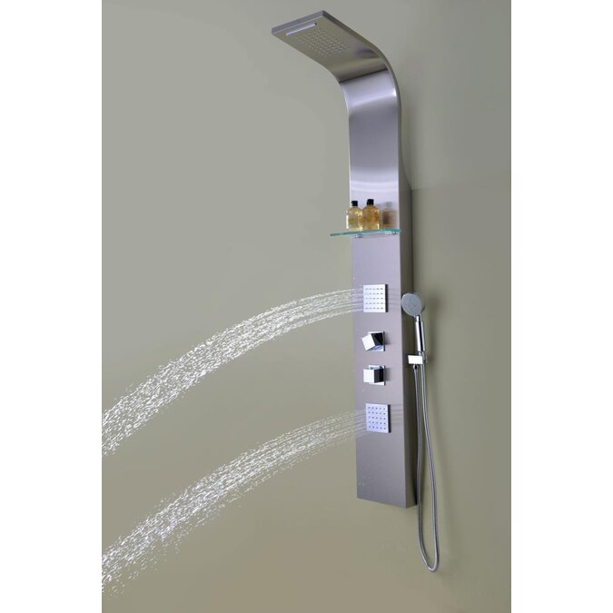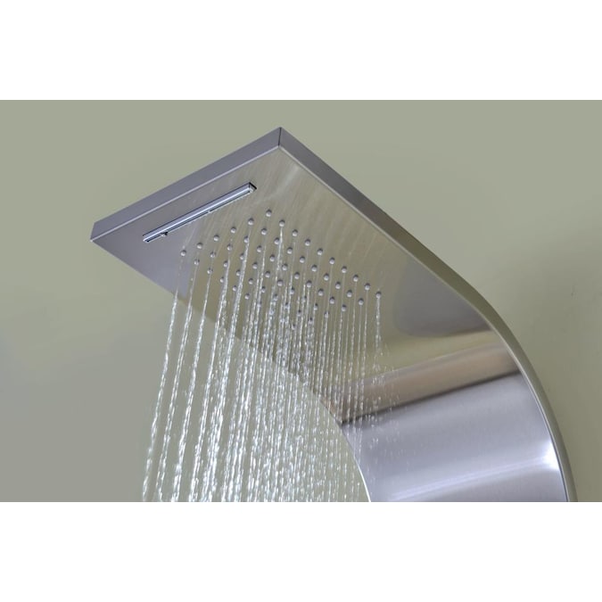 The ANZZI full body Niagara shower panel features a modern laser cut stainless steel brushed body with two Acu-Stream body jets provide a relaxing yet powerful water stream to massage the body. The Heavy Rain shower head hangs overhead releasing a steady torrent of soothing water from above as a full body shower or an impaction waterfall stream.