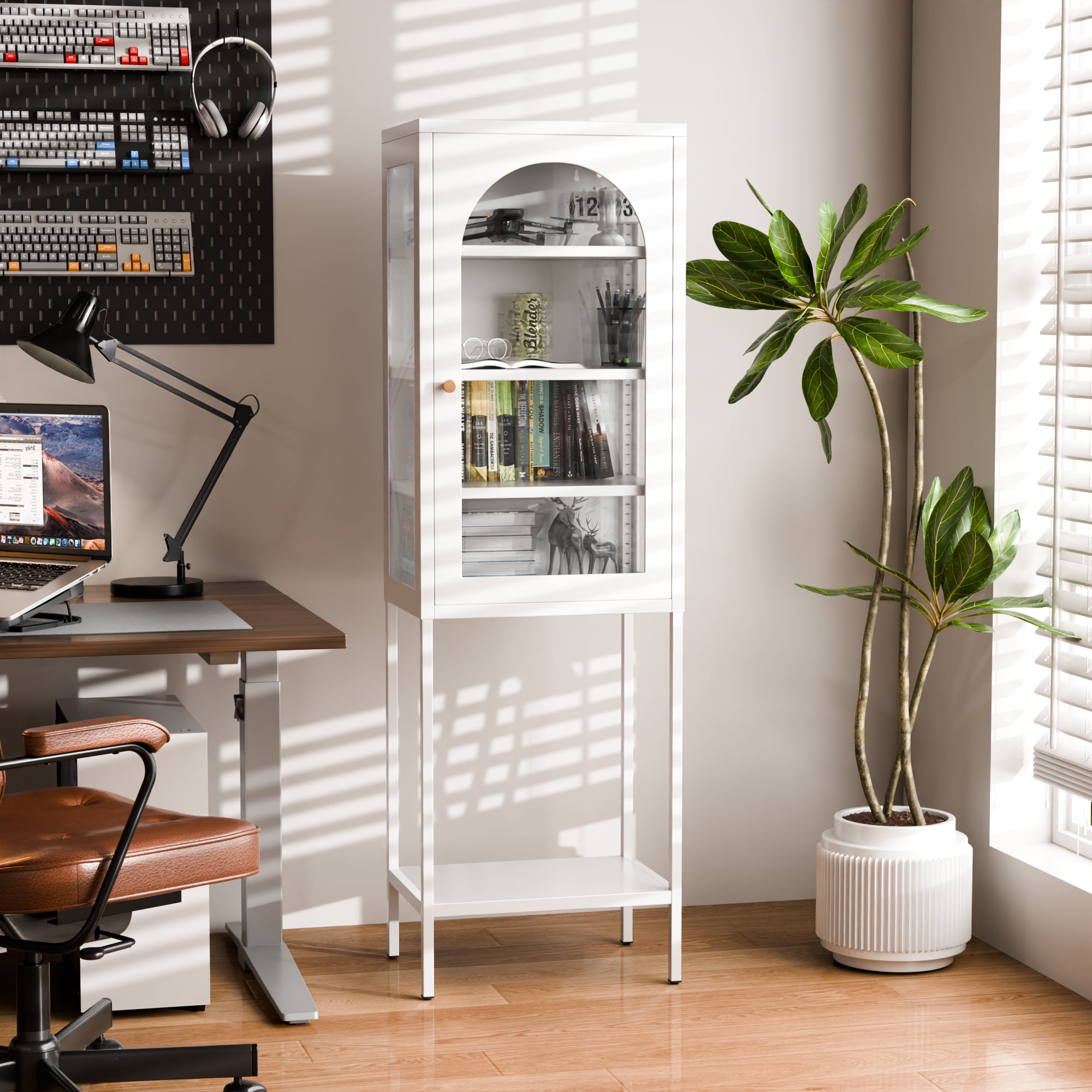 Aobabo Metal Lockers with Lower Storage Space for Living Room, Bedroom, Home, Office, Kitchen,Four Levels, Glass Door, Removable Shelf (Single Glass Door, White) Brand:Aobabo Color:White Style:Classic Number of Doors:1 Shape:Rectangular Product Dimensions: 63* 19.7*13.8in Special Feature:Adjustable,Sturdy Assembly Required: Yes Mounting Type:Floor Mount Material:Tempered Glass, Glass, Metal
