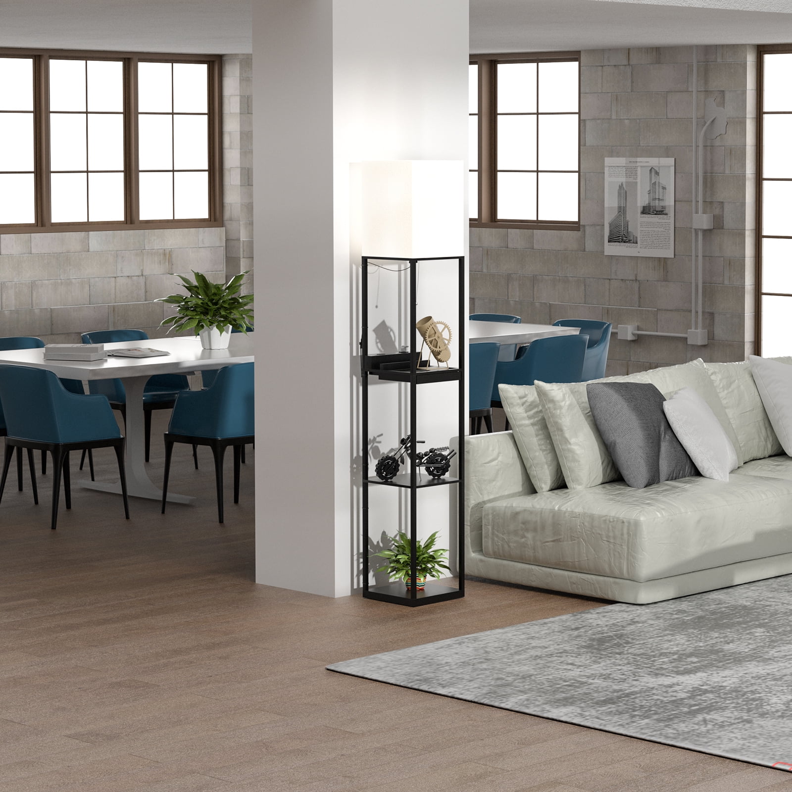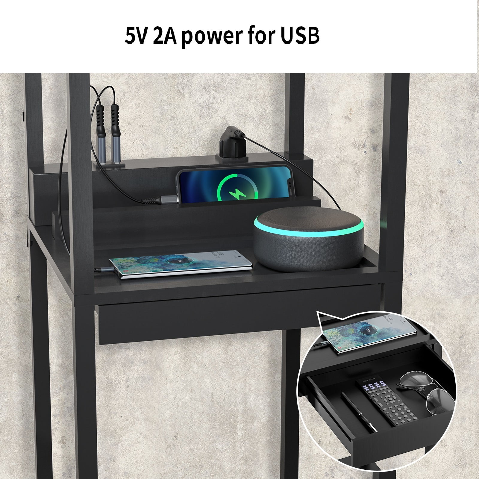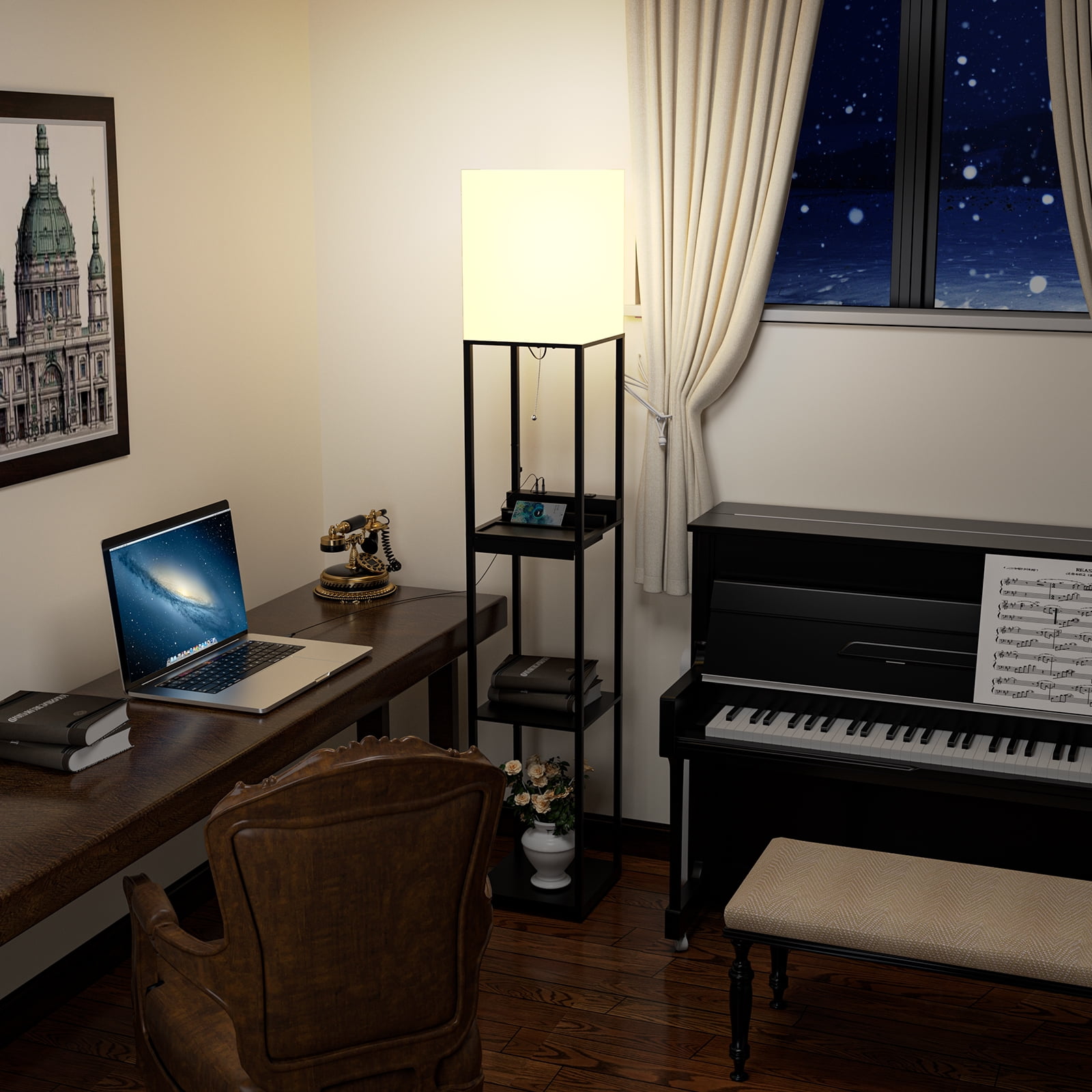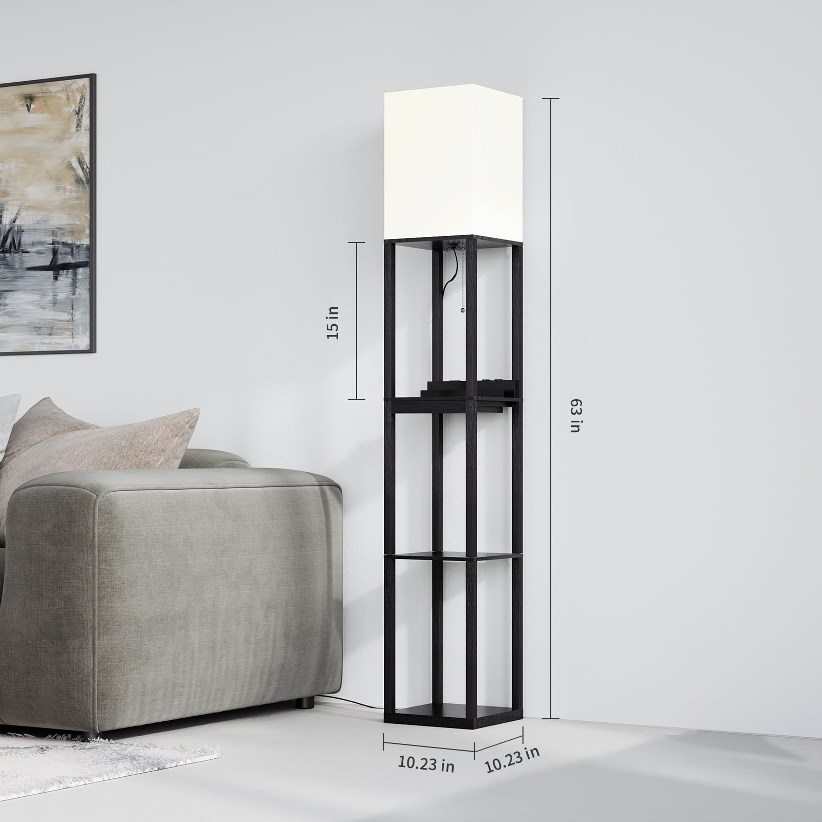 AOHAO Floor Lamp with Shelves,Tall Dimmable Lamp with 2 Charging Ports and 1 Power Outlet, Floor Lamps for Bedrooms for Living Room, Matt Black