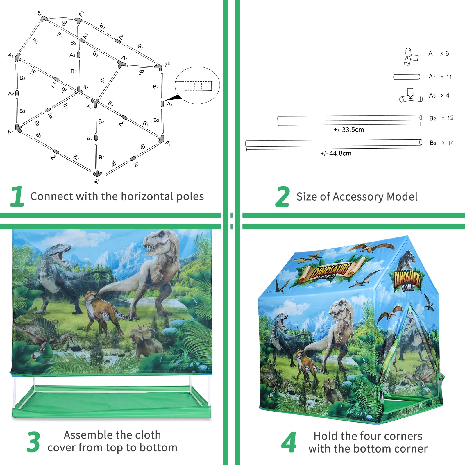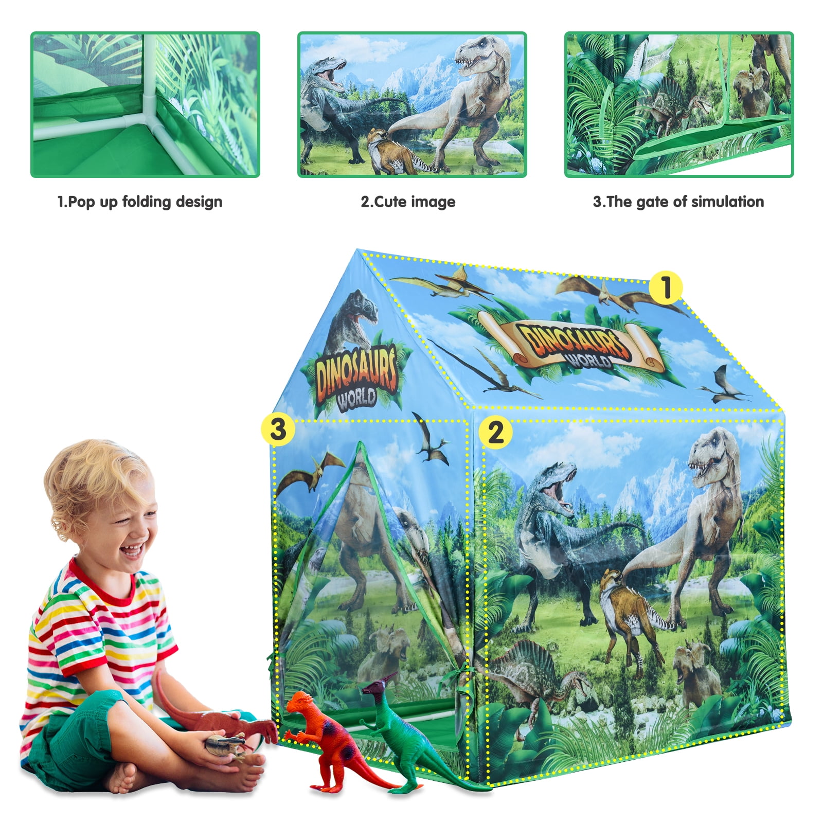 AOKESI Kids Play Tent, Dinosaur Discovery Playhouse Tent, Indoor Outdoor Dinosaur Toys Tent Pretend Playhouse Gift for 3-12 Y Girls & Boys