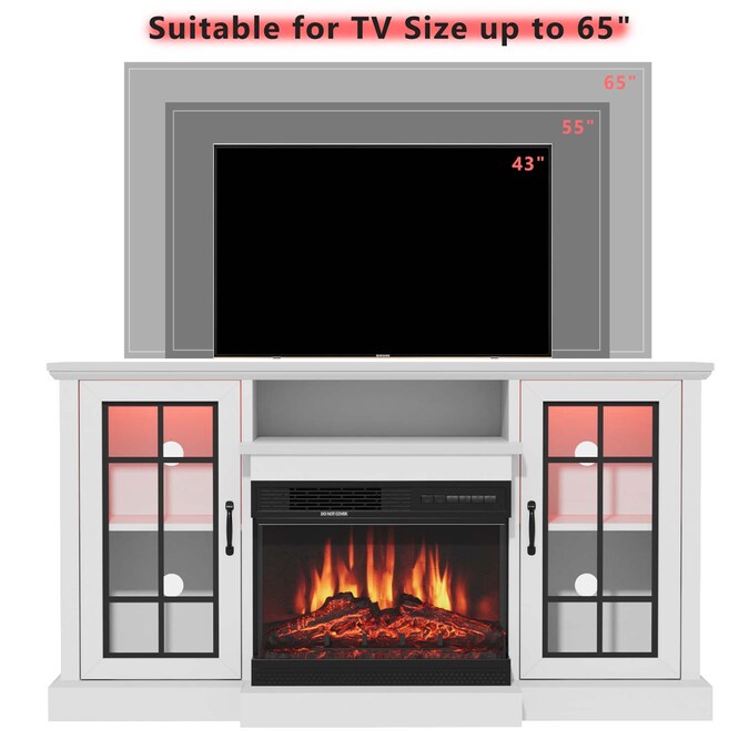 • A wide Fireplace TV stand with glass cabinets is made of sturdy material, which can hold up to 65 inches.