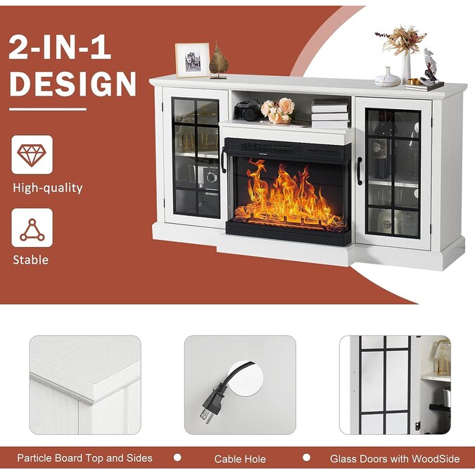 AOXUN 59-in W White TV Stand with LED Flat Wall Electric Fireplace with Remote Control Included