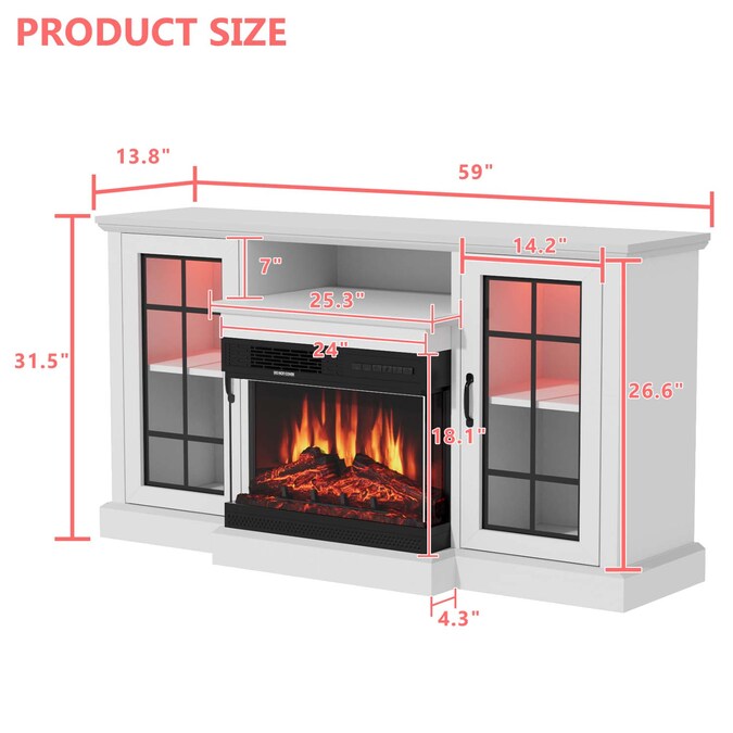 AOXUN TV cabinet with LED electric fireplace is designed to create a comfortable and warm atmosphere in your home. The TV cabinet features an LED electronic fireplace that emits realistic wood-burning flames for a smoke-free and cozy atmosphere. The fireplace quickly heats rooms up to 400 square feet and temperature range of 72° to 82° and comes with a variety of mood lighting options. In addition to the fireplace, adjustable side cabinets are included, each with a large open shelf in the middle for a cable box, DVD player or video game system.