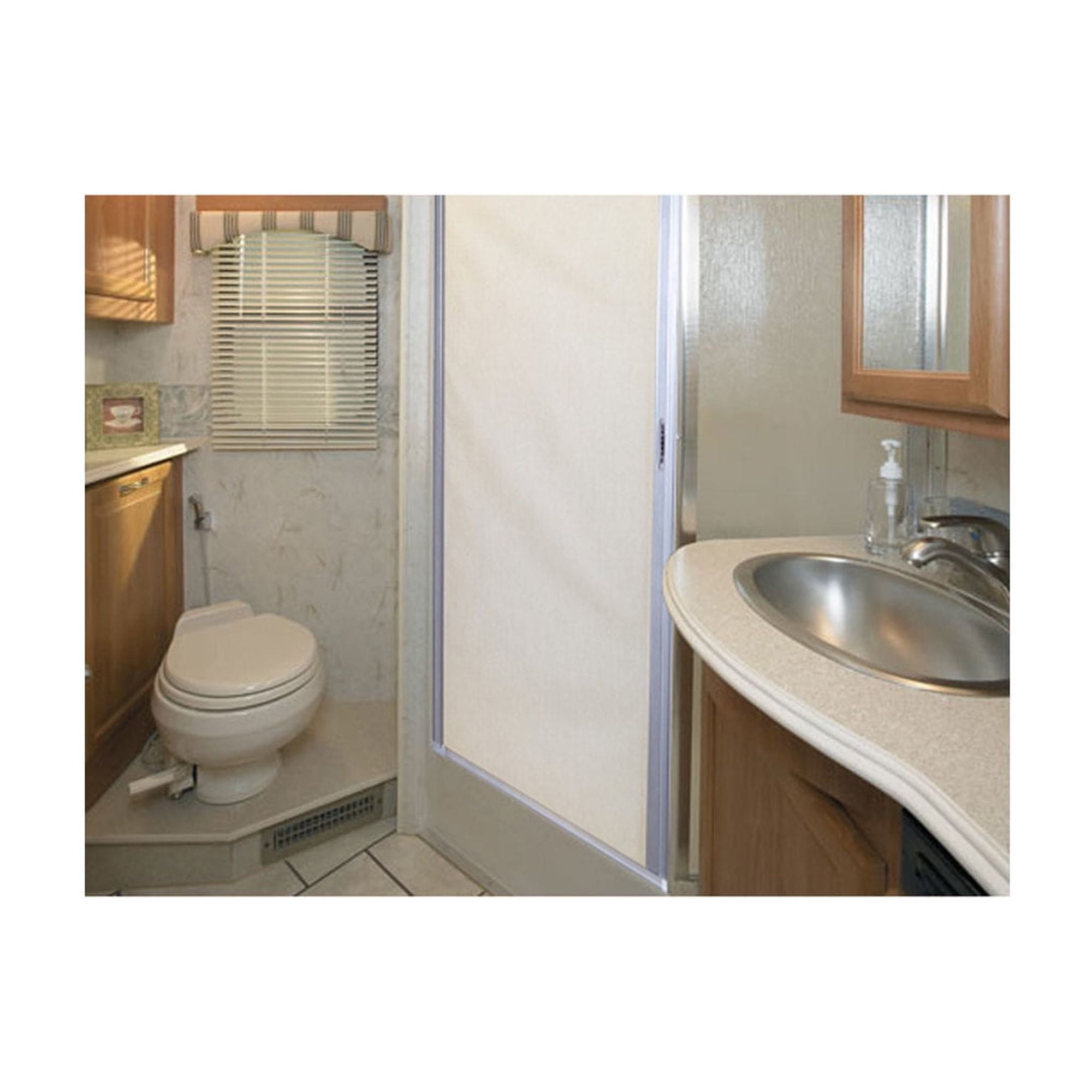 AP Products’ RV Slow-Roll Shower Screen Door is a durable, 3-ply mold resistant screen with ultra-smooth “slow-roll” operation. It is lightweight, translucent and features a compact “disappearing” design. The frame is constructed of powder-coated aluminum material. Available in two sizes: 36″ x 64″ and 48″ x 64″.