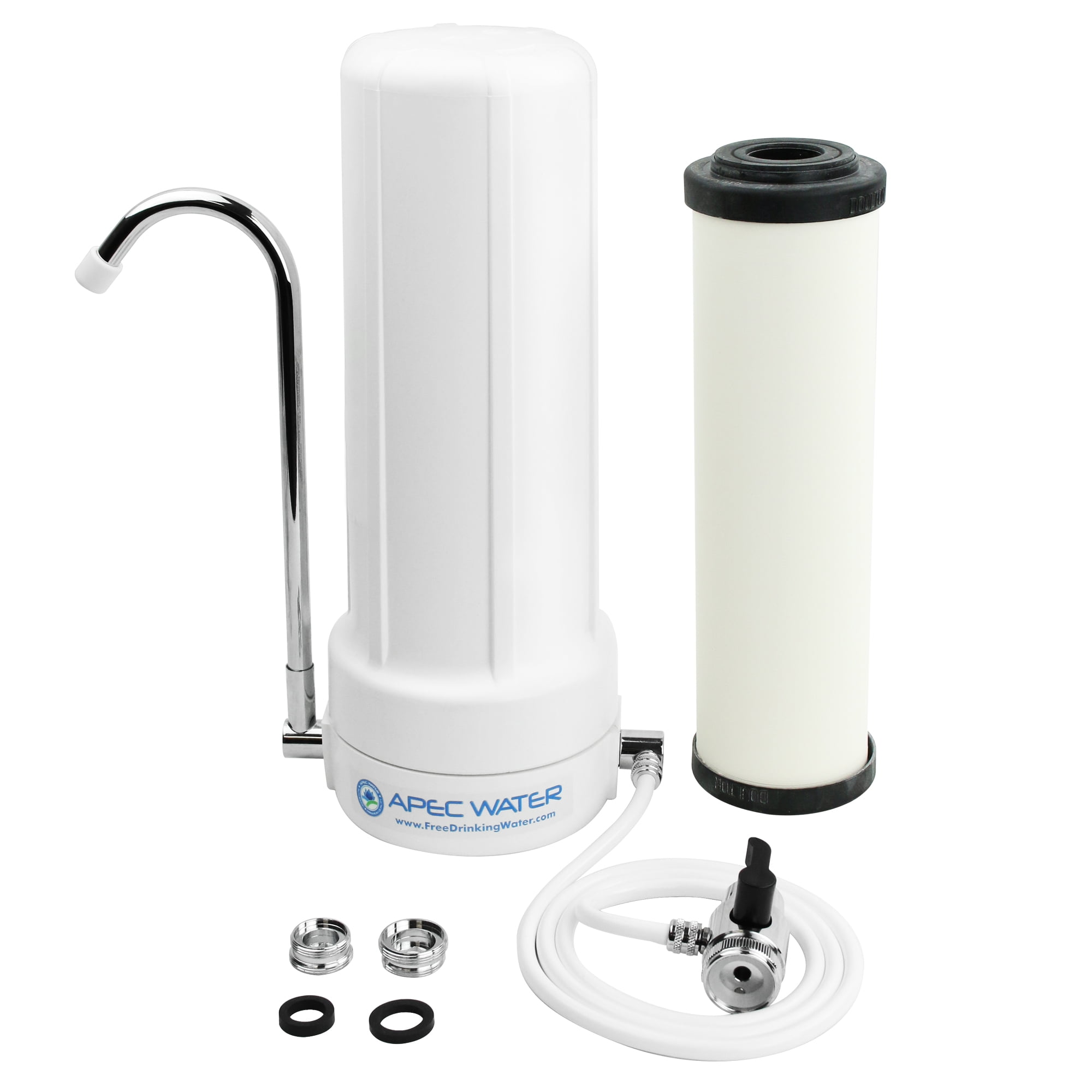 - Ceramic Countertop Water Filter includes: Certified Filter Housing with 1/4″ Inlet and Outlet; Ceramic Filter Cartridge; Diverter Valve and Tubing