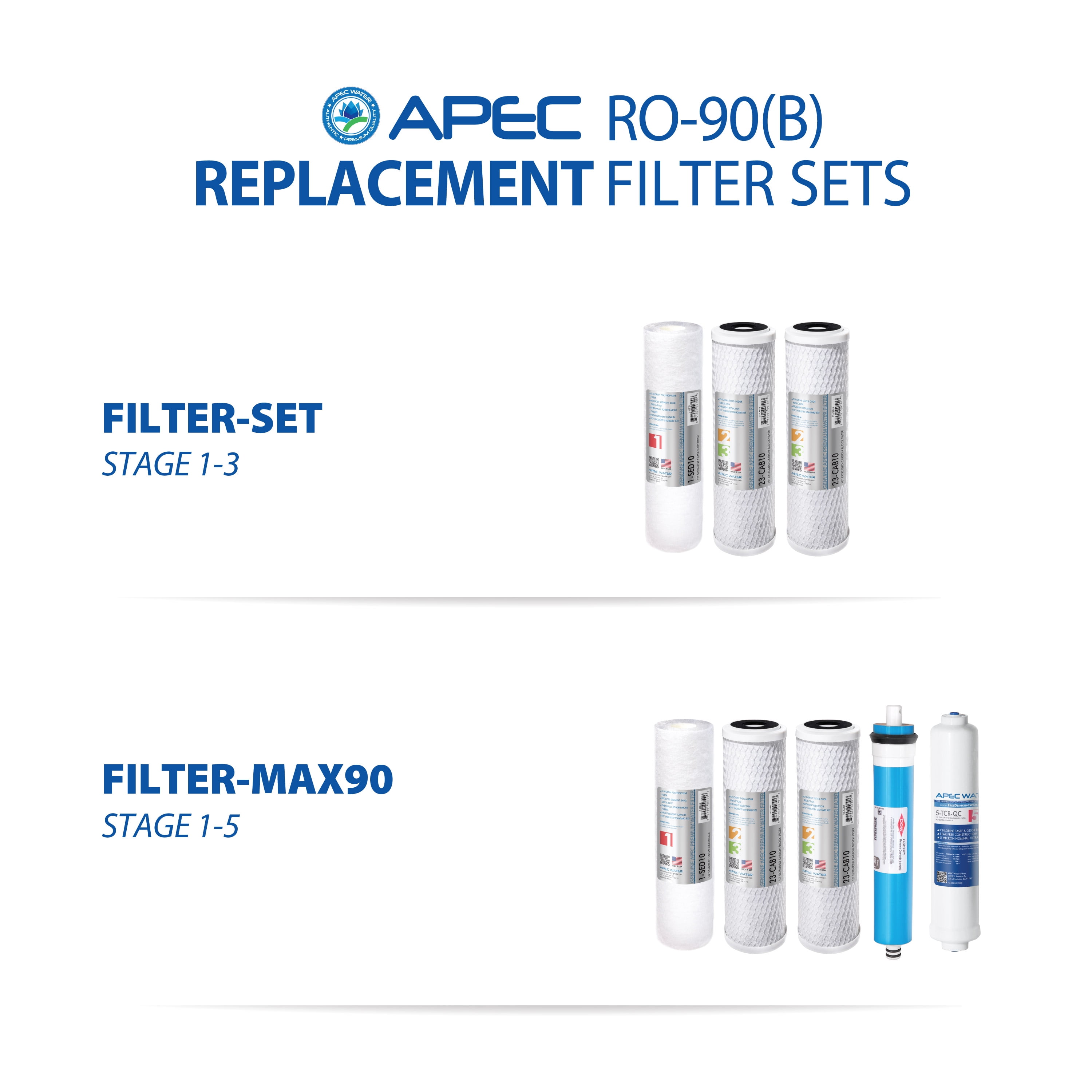 APEC Top Tier Supreme Certified High Flow 90 GPD Ultra Safe Reverse Osmosis Drinking Water Filter System (ULTIMATE RO-90(B)) 1st stage: high-grade 5 micron 10 inch high-capacity polypropylene sediment filter -removes dust, particles, and rust. Protects and extends the life of the membrane and system. 2nd stage & 3rd stage: premium extruded carbon block 5 micron 10 inch -gets rid of unpleasant chlorine, tastes, odors, cloudiness and colors. Also removes VOC and other common chemicals from the water. 4th stage: industry’s highest quality filmtec (dow chemical) high rejection tfc reverse osmosis membrane. Removes up to 99% of TOTAL dissolved solids (tds) and contaminants such as arsenic, lead, fluoride, chromium, radium, bacteria, viruses and much more. 5th stage: advanced coconut shell refining carbon 10 inch – TCR (Total Contamination Removal) filter removes any possible residual taste from the tank.