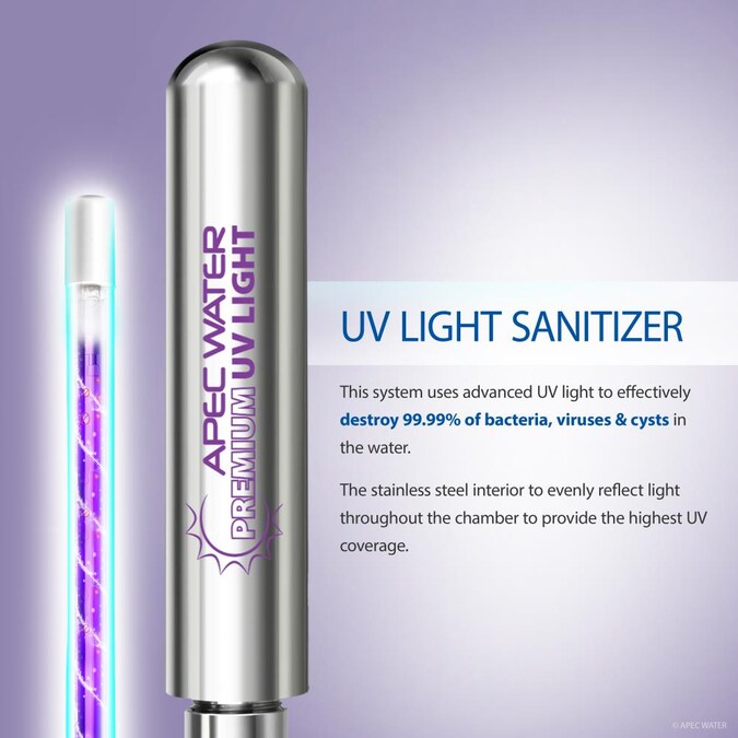 - The continuous UV sanitation destroys up to 99.99% of bacteria, viruses, cysts, and kills parasites in un-chlorinated water for extra protection against all microbial pathogens